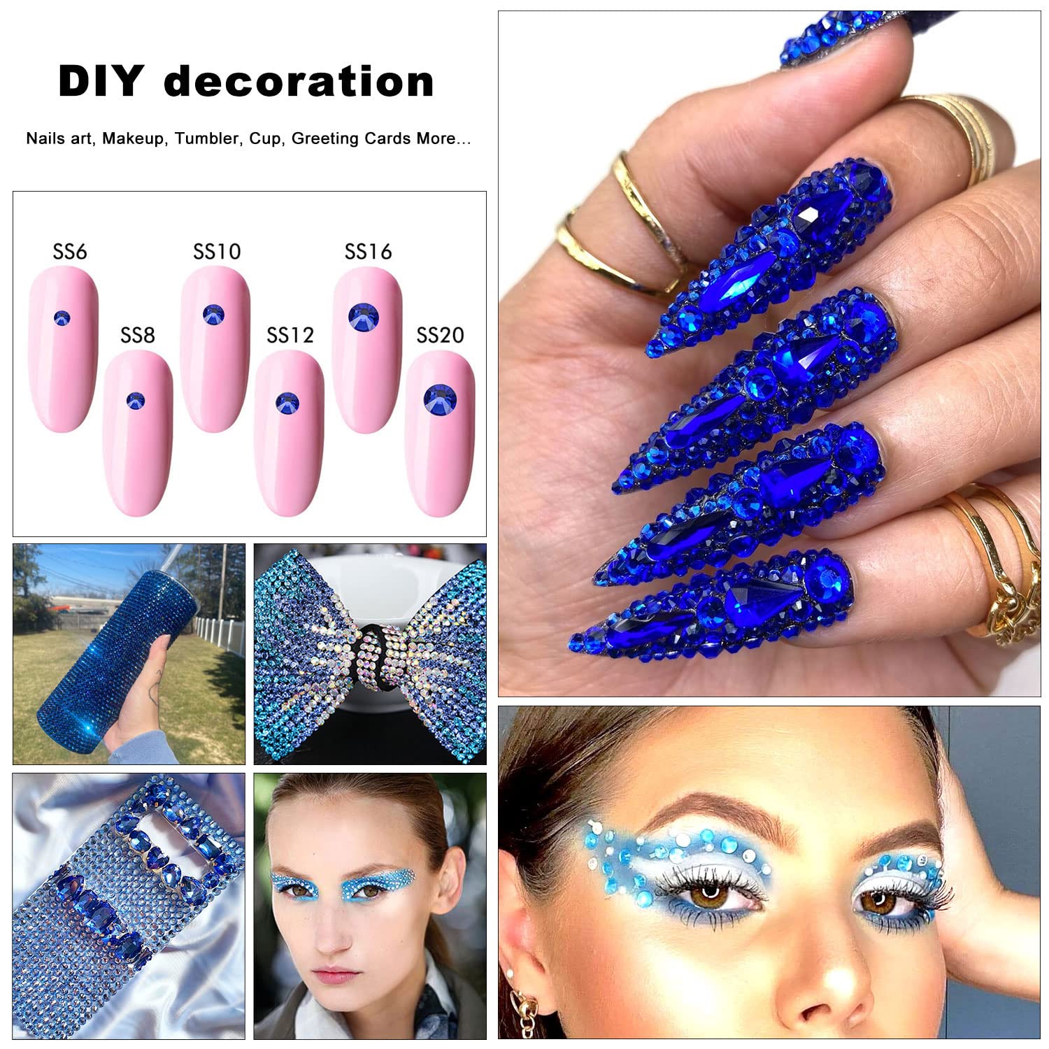 - 💎Use tweezers and Picking Pen gem picker to pick rhinestones, There is no glue on the bottom, additional nail gel is required, or other professional glue for makeup or nails. Can use E6000 super glue to fix on crafts, art decoration. not hotfix.