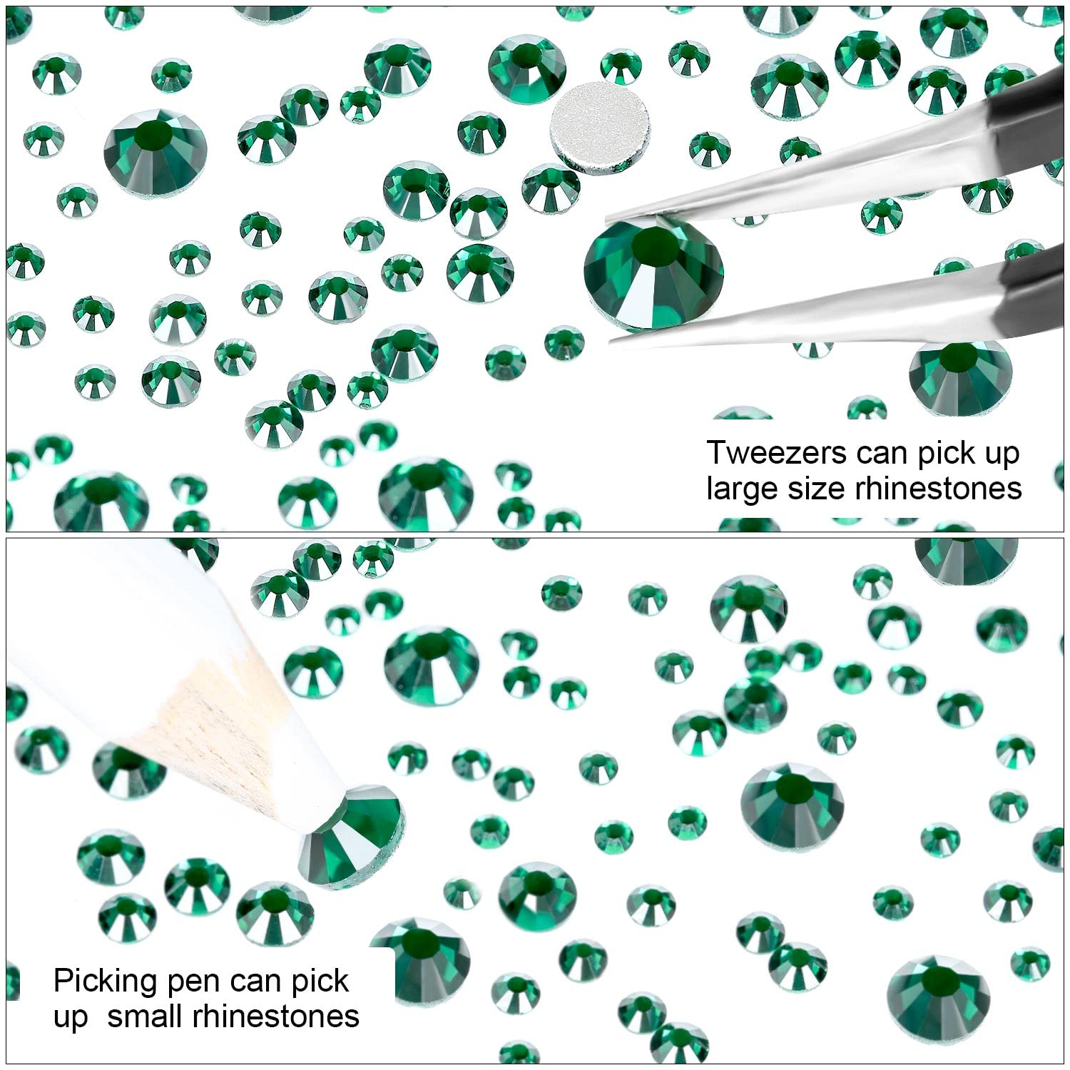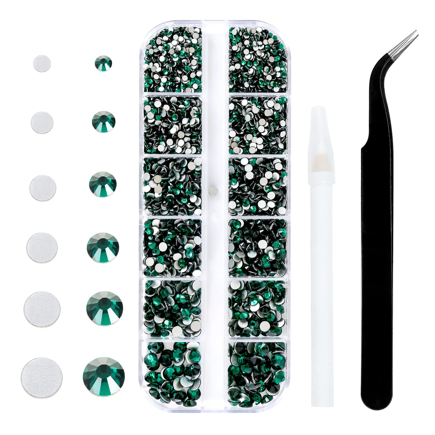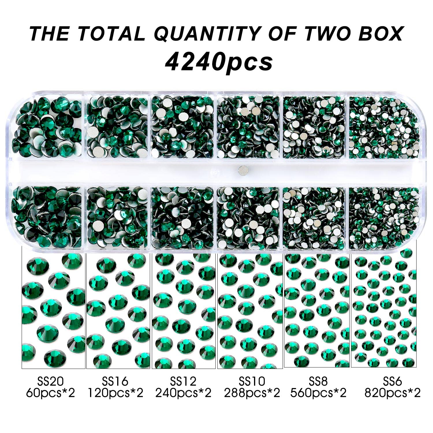 4240Pcs Flatback Green Rhinestones Glass Crystal Diamonds for Nail Art Face Makeup Sparkly Round with Tweezers and Picking Pen (SS6~SS20 Set)