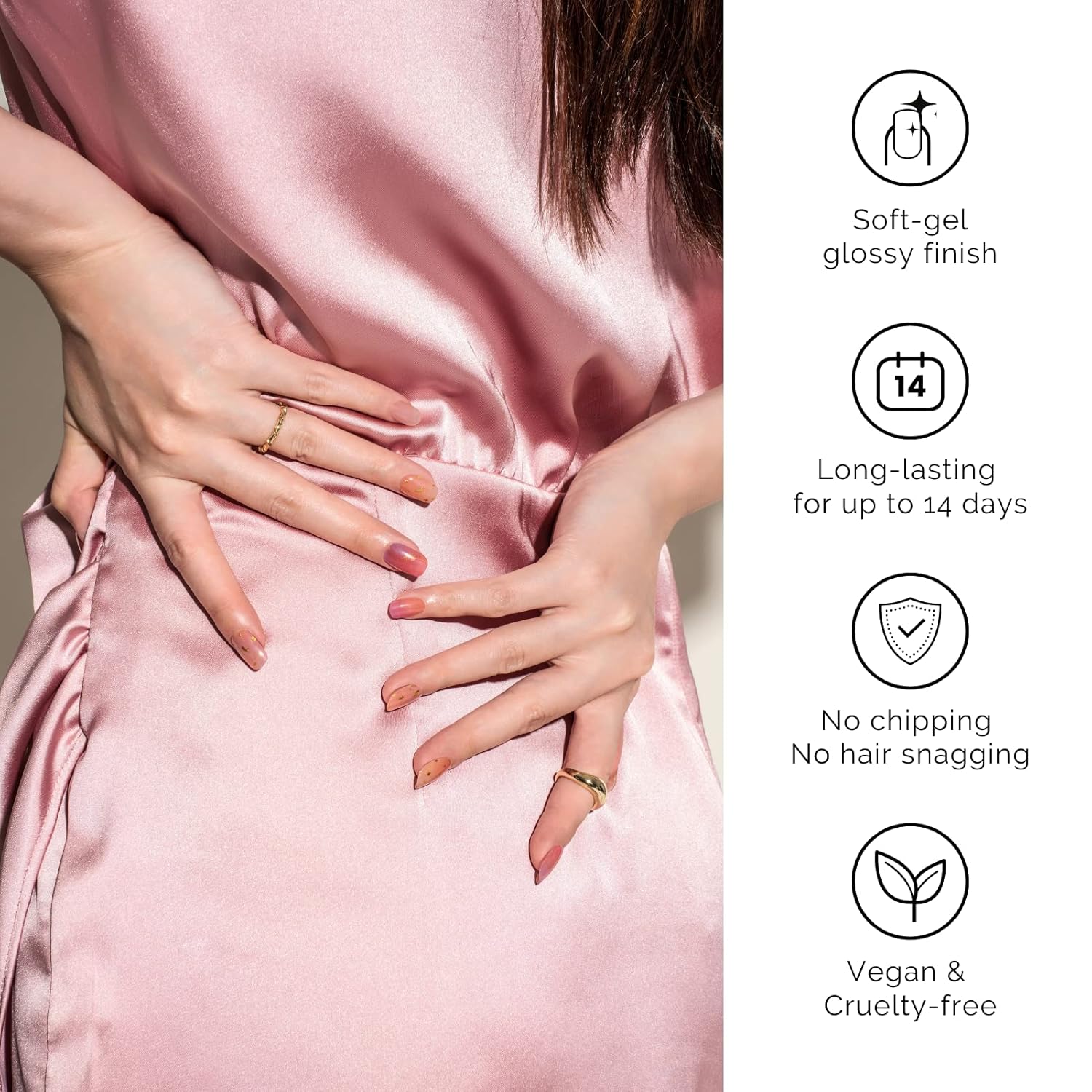 - ăSALON QULITYă Made of real nail polish 60% precured, soft to fit all nail shapes - Nailog semi-cured strips with waterproof top gel last up to 2 weeks once cured with a UV lamp. - Our gel nails are also extremely lightweight so they do feel like your own nails!