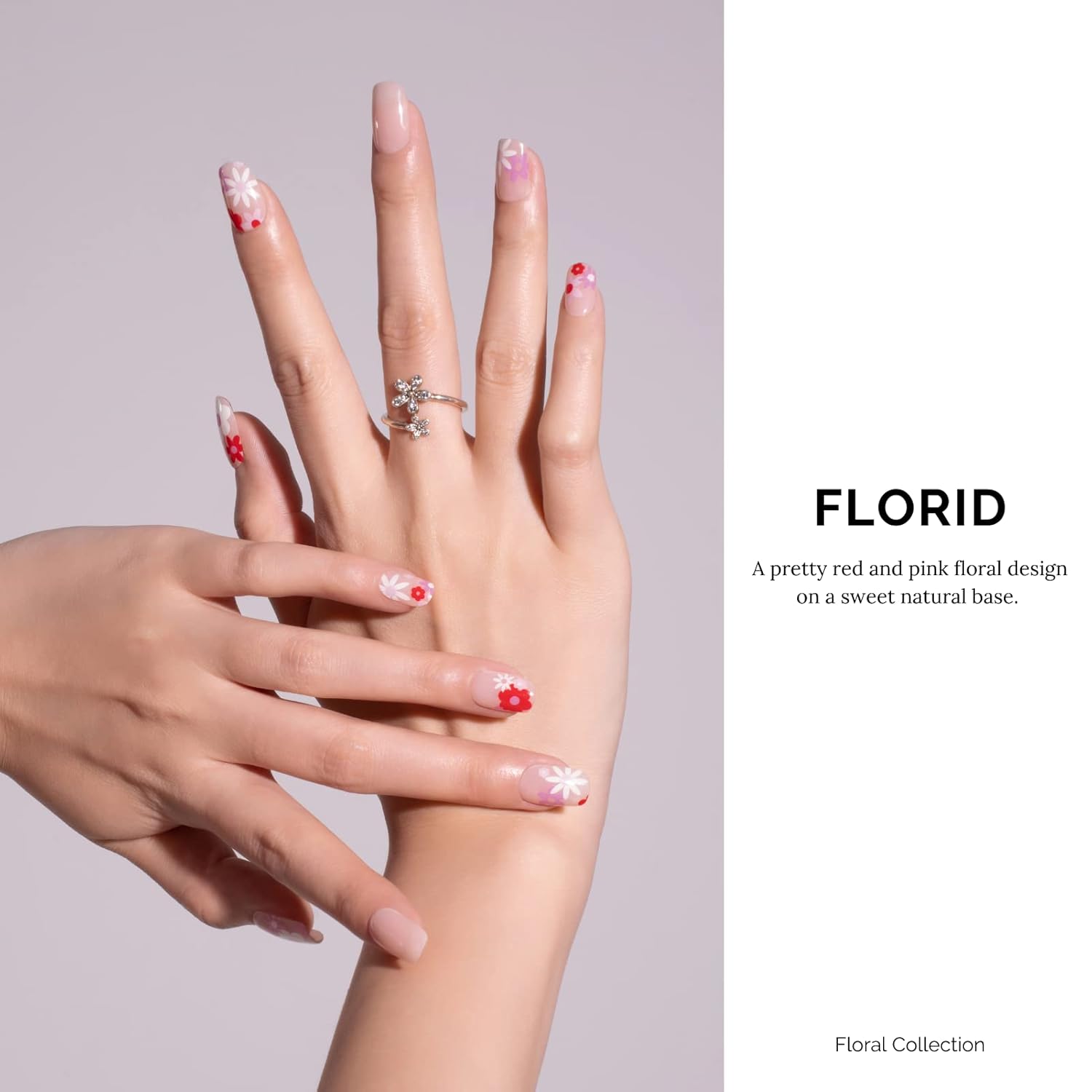 Nailog Semi Cured Gel Nail Strips 34 pcs | Long Lasting Nail Polish Sticker Wraps with Glossy Gel Finish (Florid)