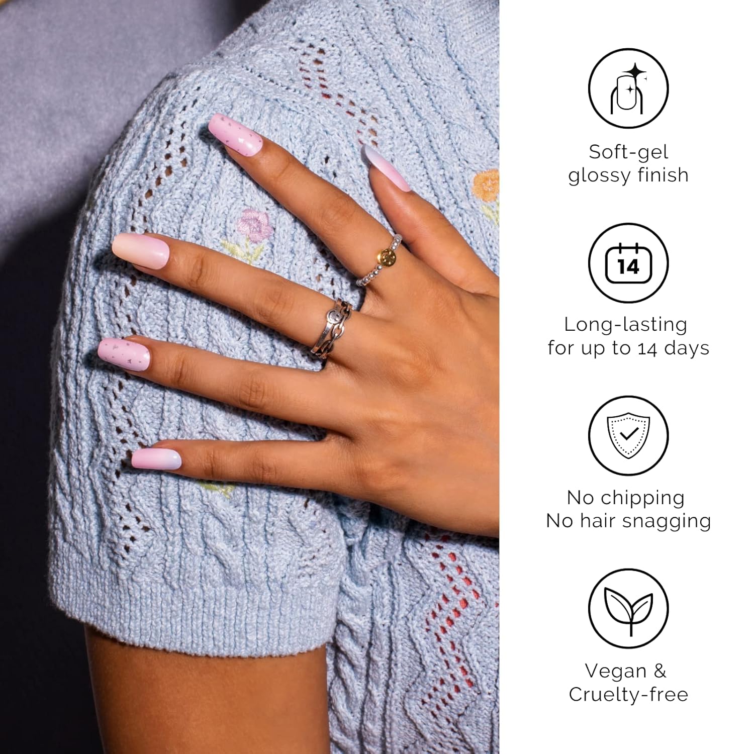 Nailog Semi Cured Gel Nail Strips 34 pcs | Long Lasting Nail Polish Sticker Wraps with Glossy Gel Finish | Daydream