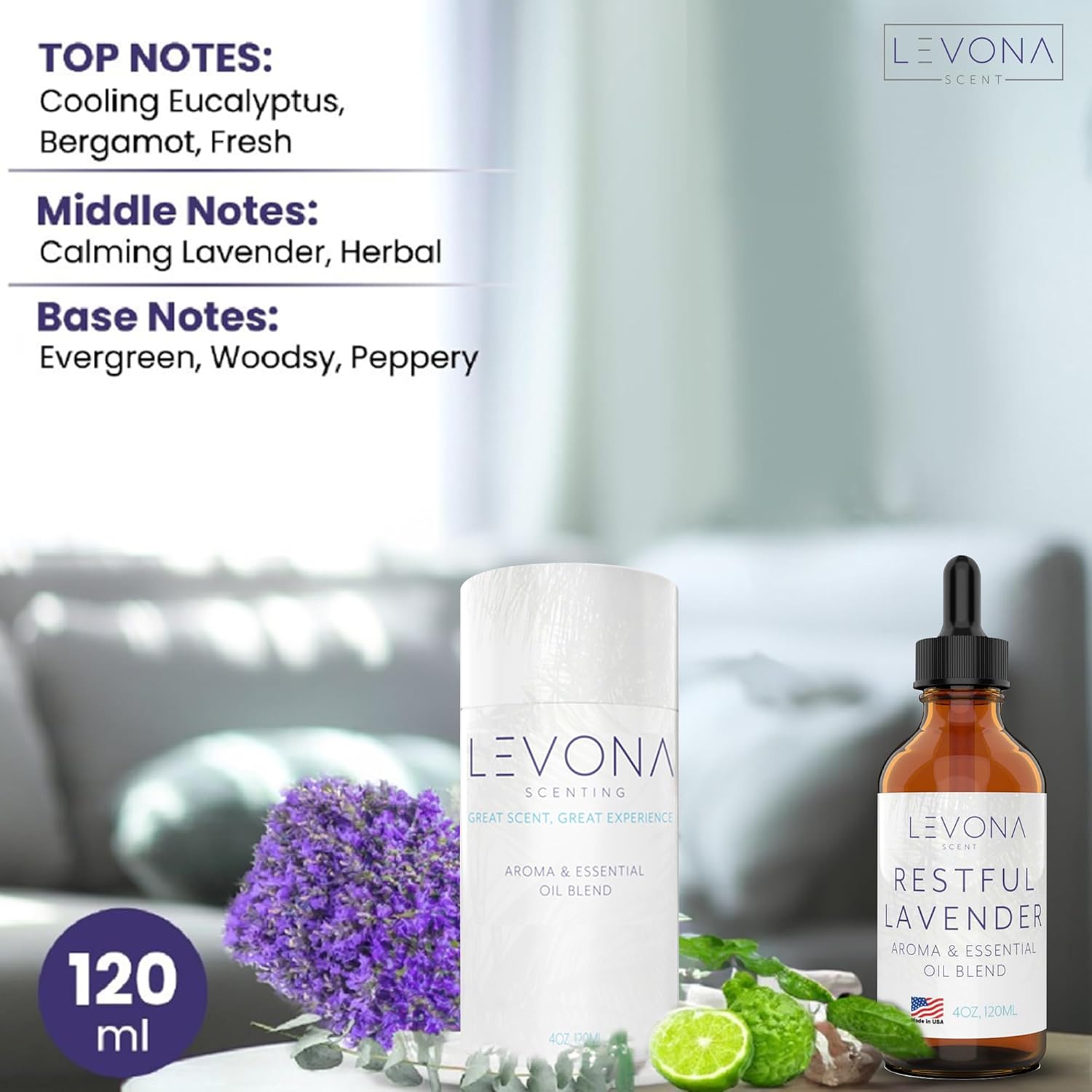 - REFRESHING BLENDS YOU’LL LOVE - Levona Scent's Restful Lavender fills your space with a calming floral aroma. Infused with cooling eucalyptus, bergamot, and fresh notes, it creates a tranquil, soothing environment, perfect for relaxation and unwinding.