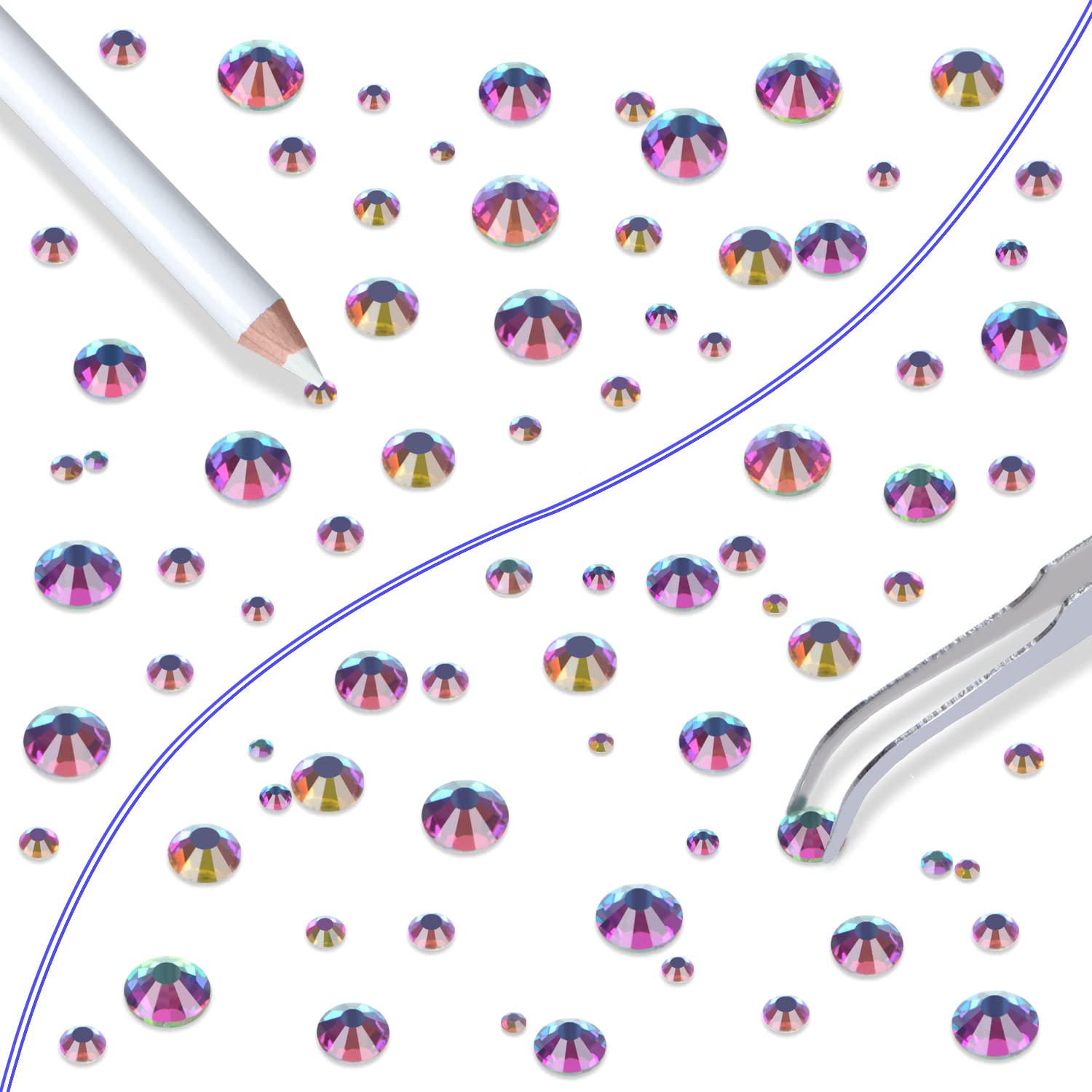 - Approx 6000 pcs of good quality sparkly flatback glass rhinestones with tweezers and 2 picker wax pencils help you easily pick up and set rhinestones in all your jewelry.