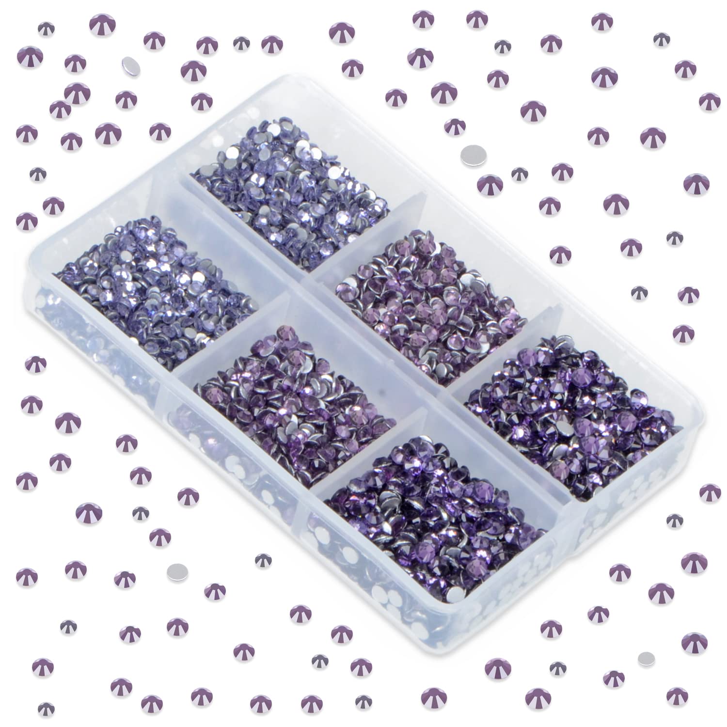 LPBeads 6000 Pieces Tanzanite Non Hotfix Rhinestones 6 Sizes Round Crystal Glass Flat Back Rhinestones with Tweezers and Picking Pen for Nail Art Crafts Clothes Bags DIY