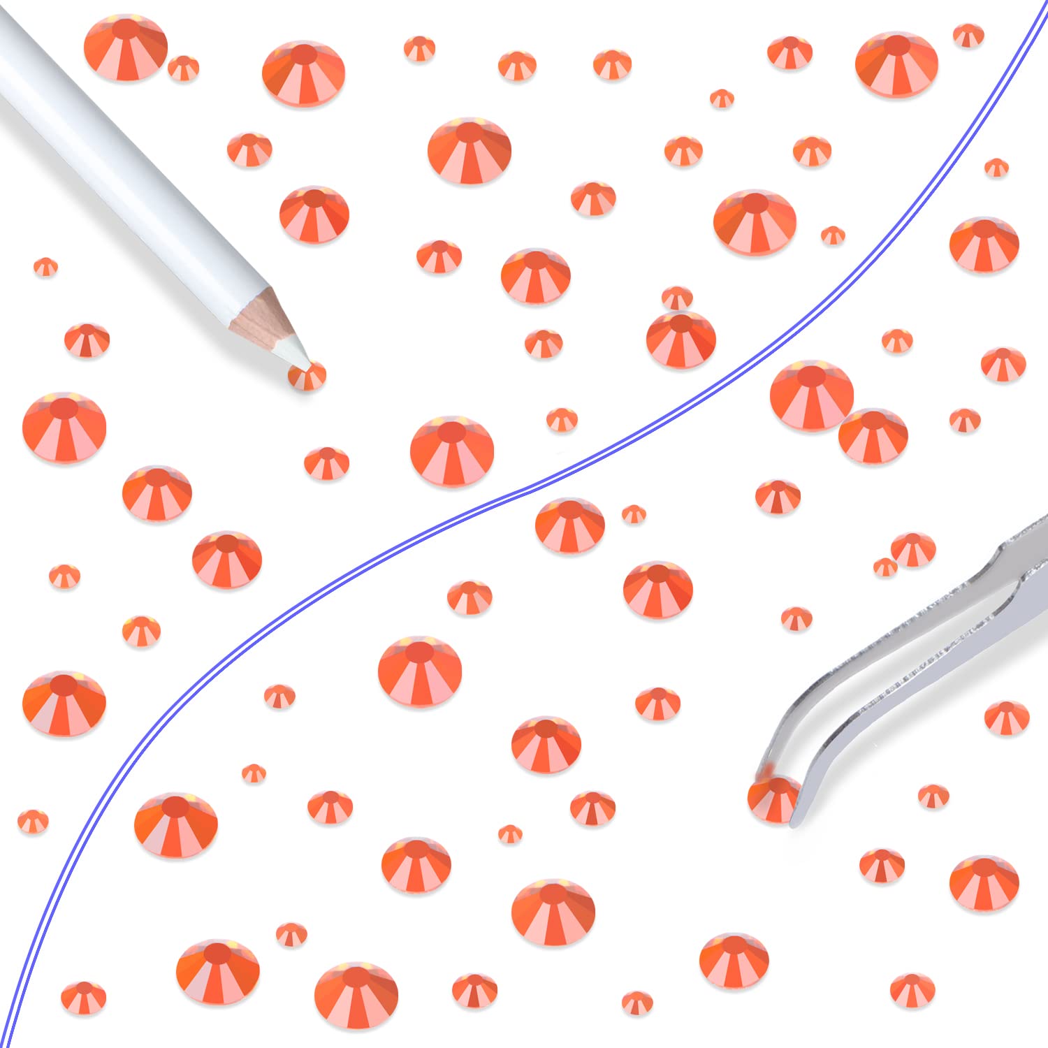 LPBeads 6000 Pieces Orange Non Hotfix Rhinestones 6 Sizes Round Crystal Glass Flat Back Rhinestones with Tweezers and Picking Pen for Nail Art Crafts Clothes Bags DIY