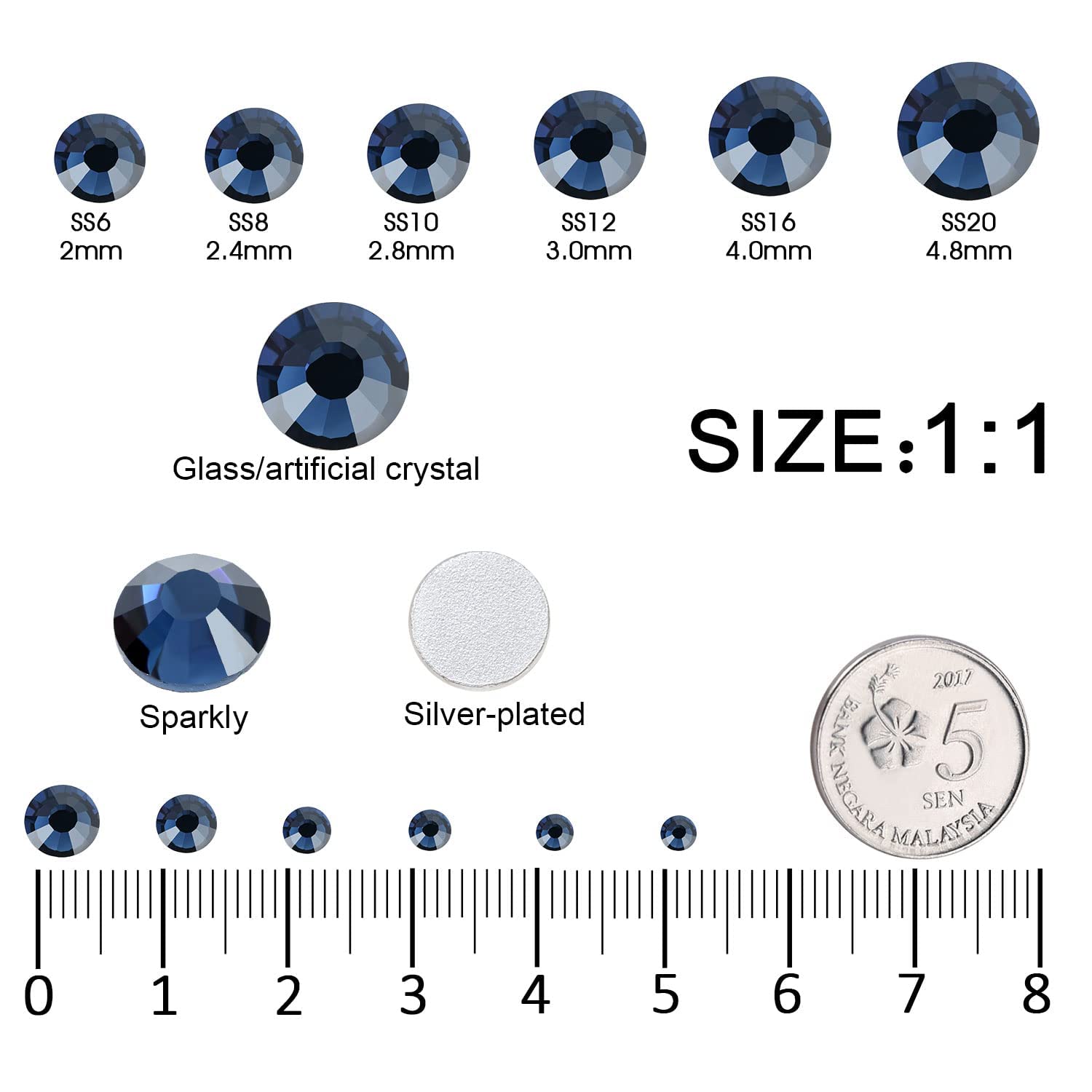 - đMaterial: glass/artificial crystal. The surface has a high-precision section, multi-faceted cutting, high brightness and high gloss. Flat bottom, round shape, silver plated back, non-allergenic. The color runs through the rhinestones without fading.