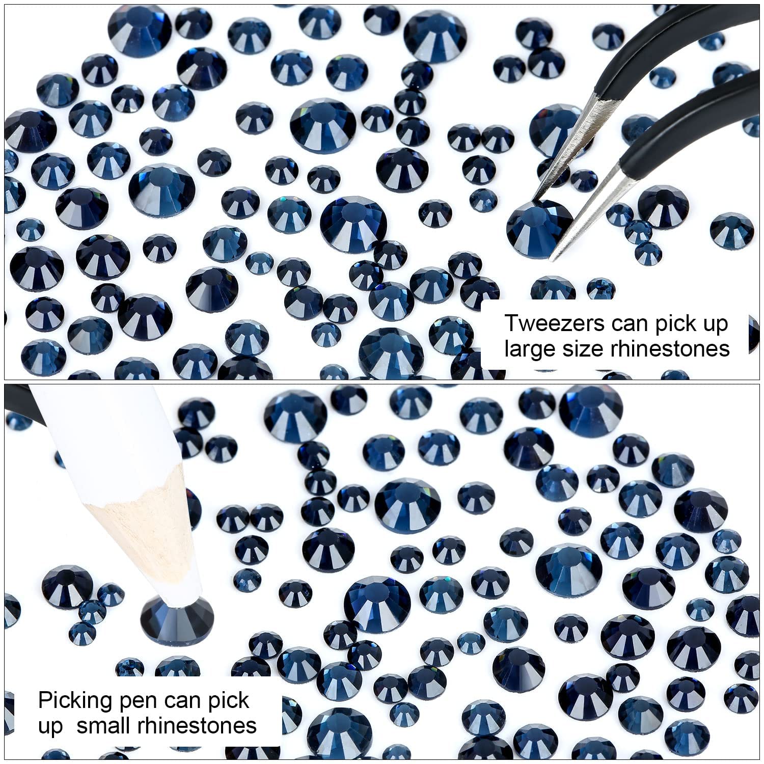 4240Pcs Montana Flatback Rhinestones 6 Sizes Crystal Diamonds for Nail Art Crafts Clothes Shoes with Tweezers and Picking Pen
