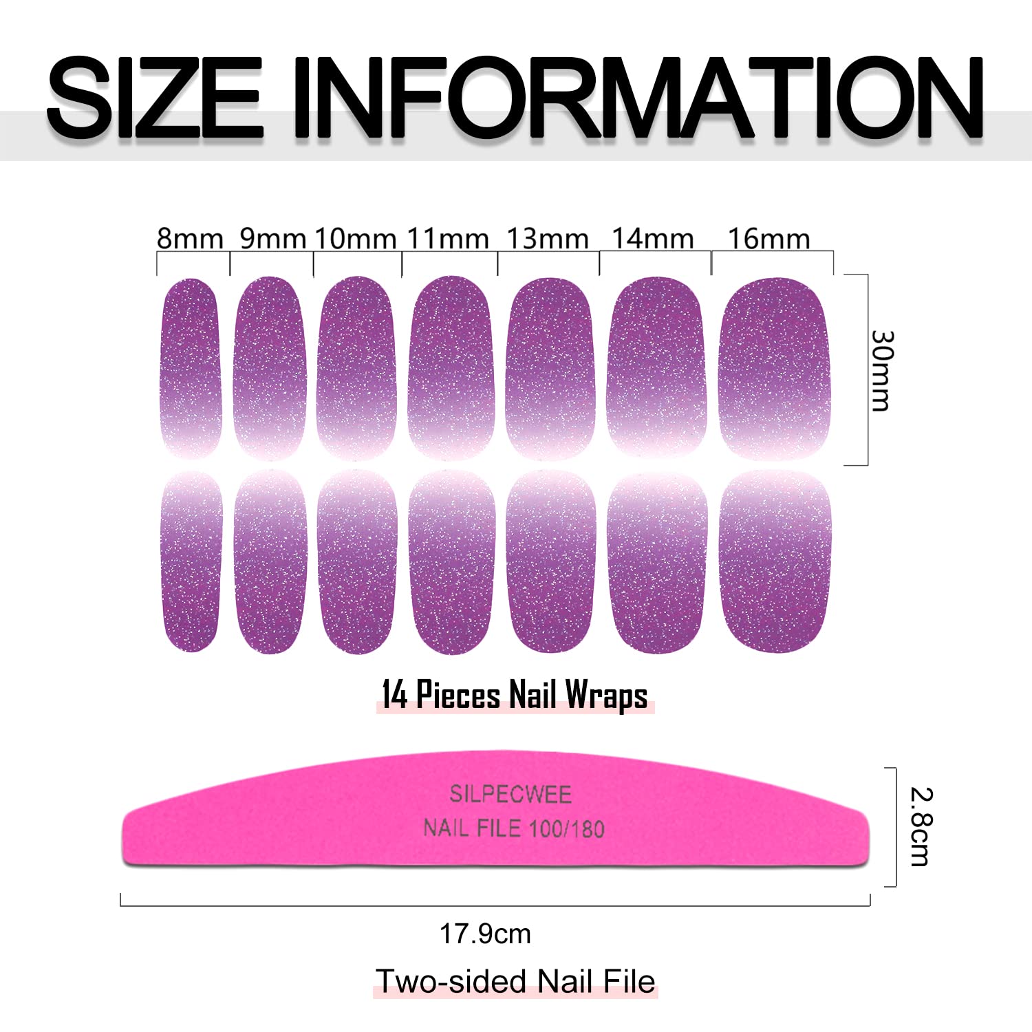 - Stylish Glitter Solid Color - SILPECWEE nail strips have fashionable and changeable colors, depth matching, color gradient, special effect of color fusion, amazing nail art effect, it make you at any time and on any occasion, you are definitely the most charming one.