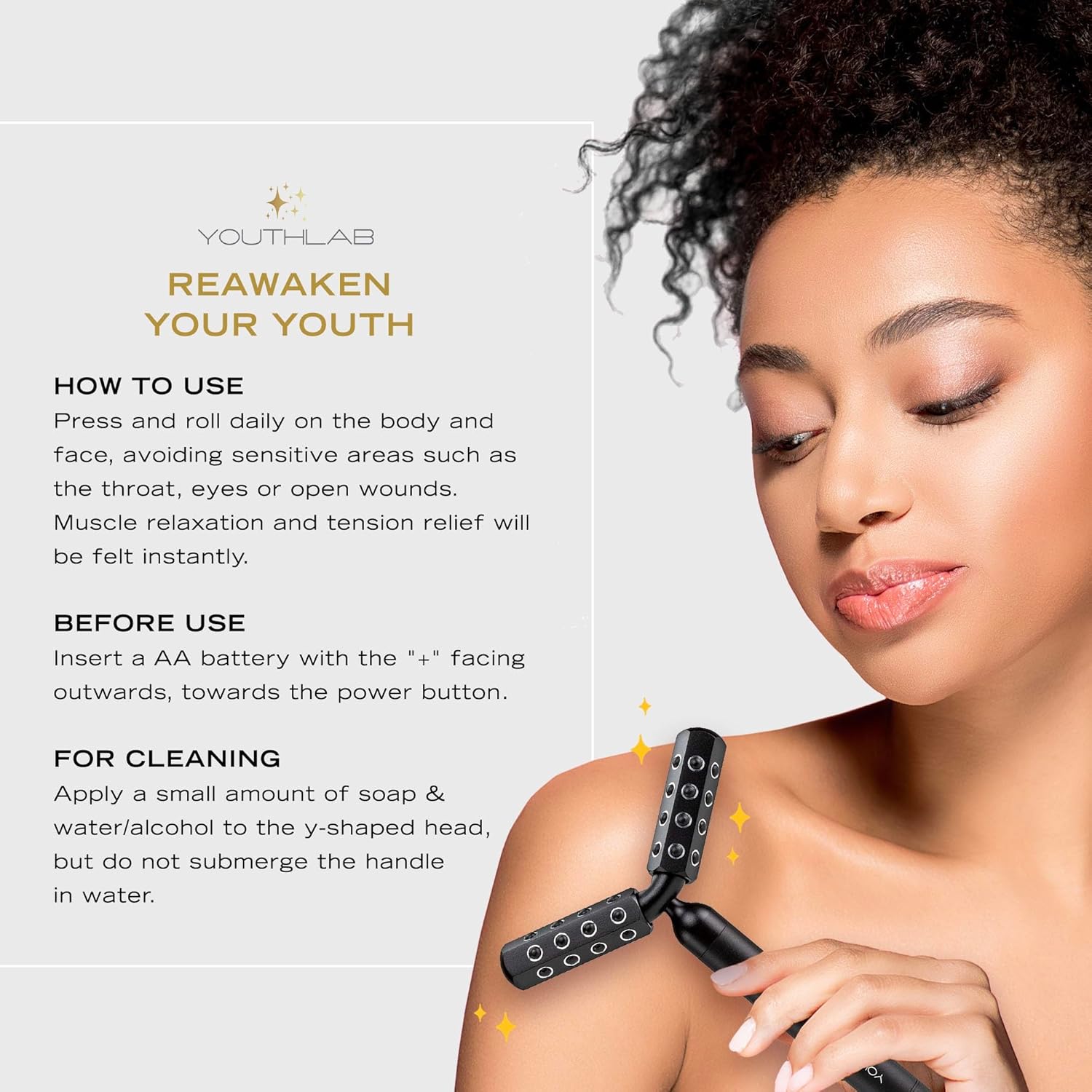 - RELAX AND UNWIND: The rhythmic rolling action and unique “Y-shaped” head delivers a soothing massage across the face, neck, arms, legs, and jawline — perfect for refreshing tired skin and melting away daily stress.
