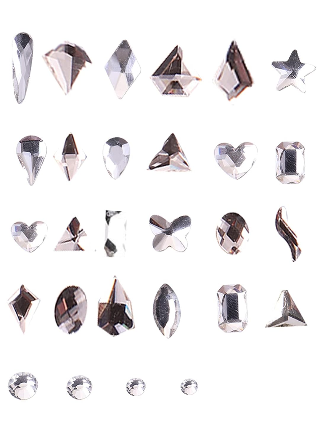 - 【SHINY CRYSTAL KIT】The professional luxury 3D rhinestones mixed 28 types,including 24 kinds of different shapes and 4 sized round rhinestones.Besides,the set is also equipped with a pretty wax pen and tweezers which can make nail decoration designs and add brilliance and charm to your nails.