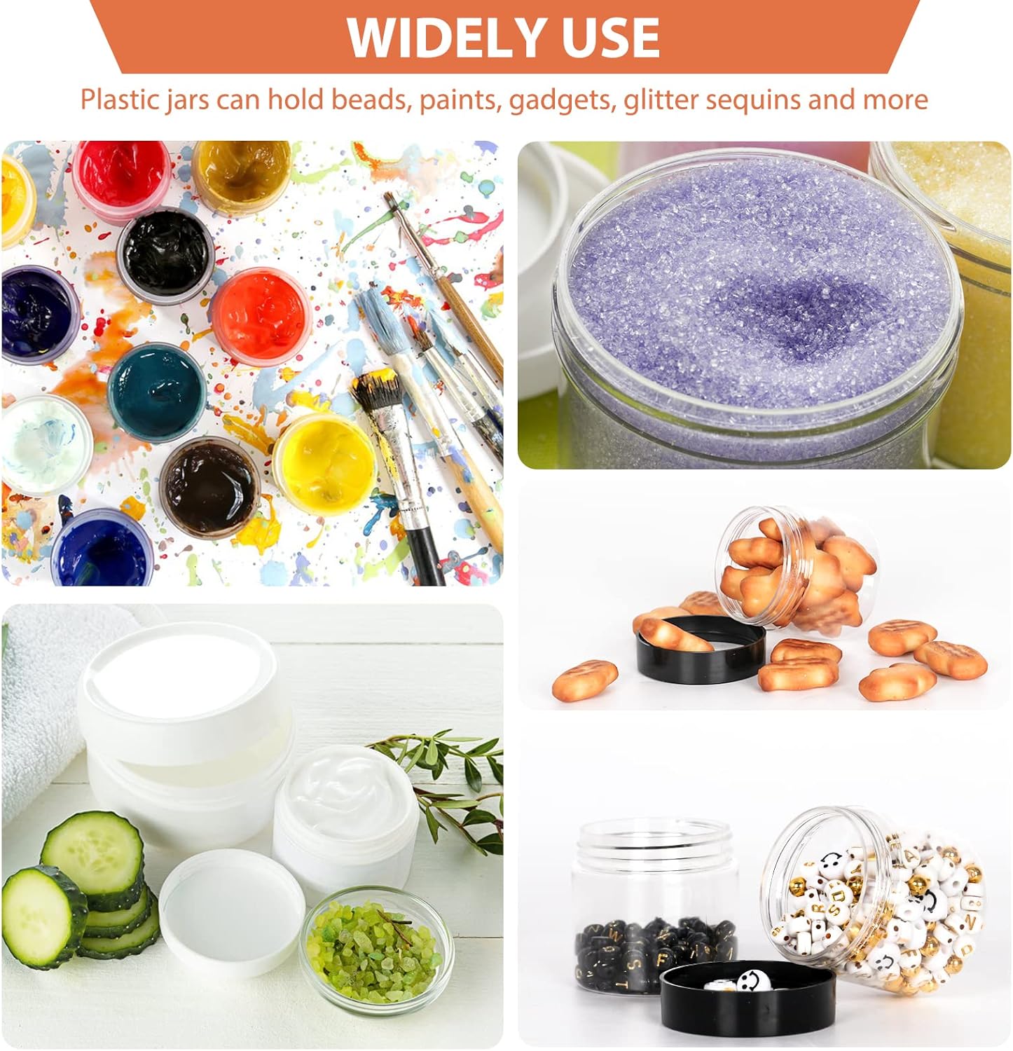 50pcs 2 oz Clear Plastic Round Jars with Black Lids, 2oz 60ml Leak-Proof Wide-Mouth Cosmetic Storage Containers for Kitchen Use, Beauty Products, Cream, Scrubs, Bath Salt and More