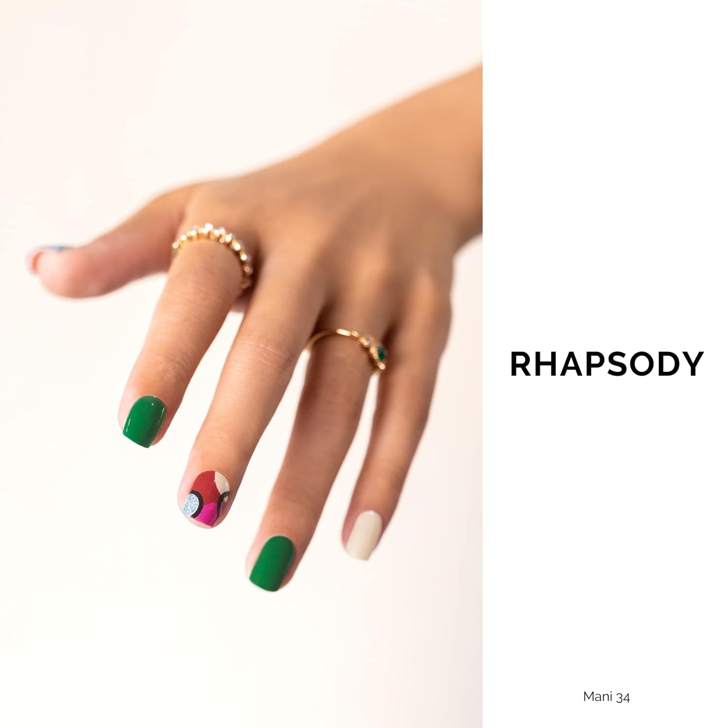 Nailog Semi Cured Gel Nail Strips 34 pcs| Long Lasting Nail Polish Sticker Wraps with Glossy Gel Finish, Rhapsody
