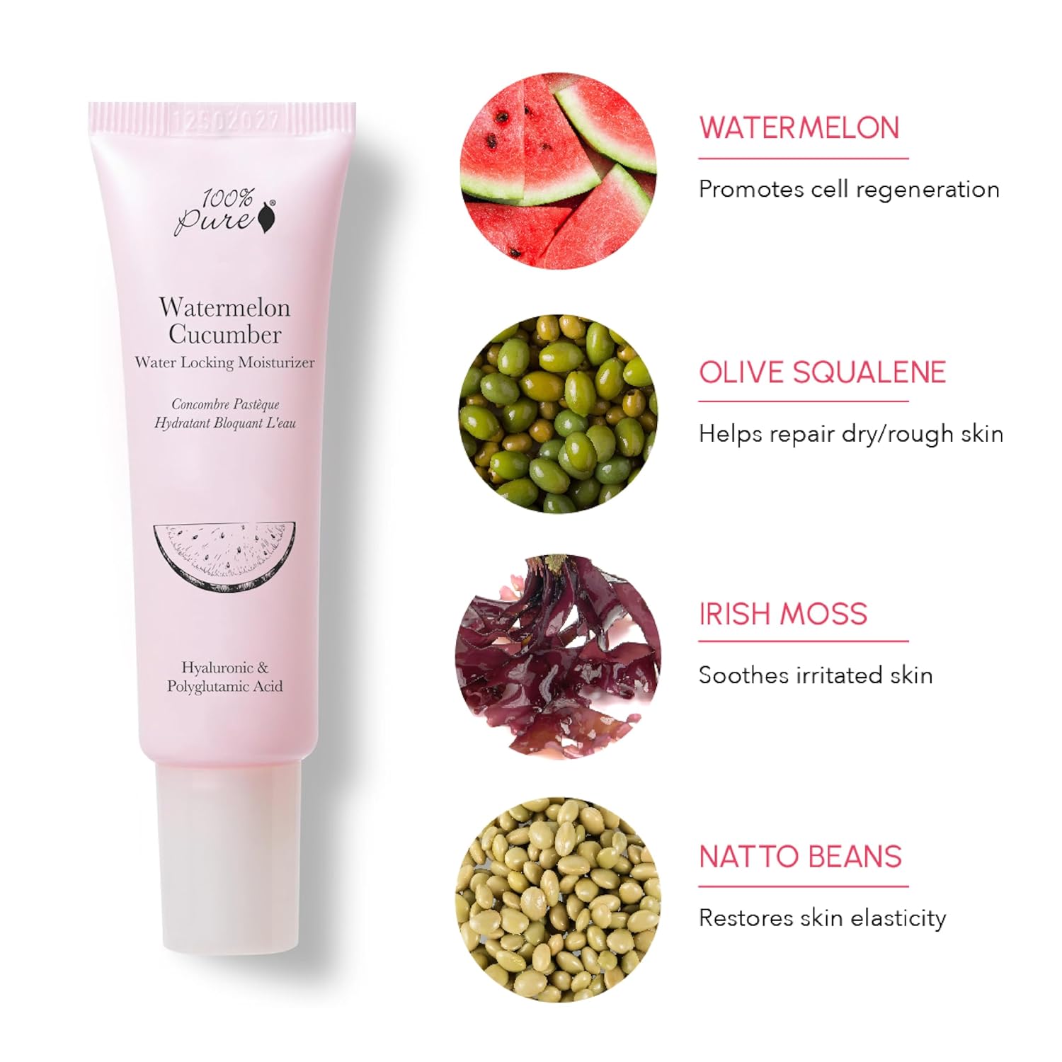 100% PURE Watermelon Cucumber Water Locking Moisturizer Natural Facial Hydration Boost with Hyaluronic Acid Replenishing Anti Aging Face Cream & Quenching Dry Skin Care Vegan - 1.4 fl oz