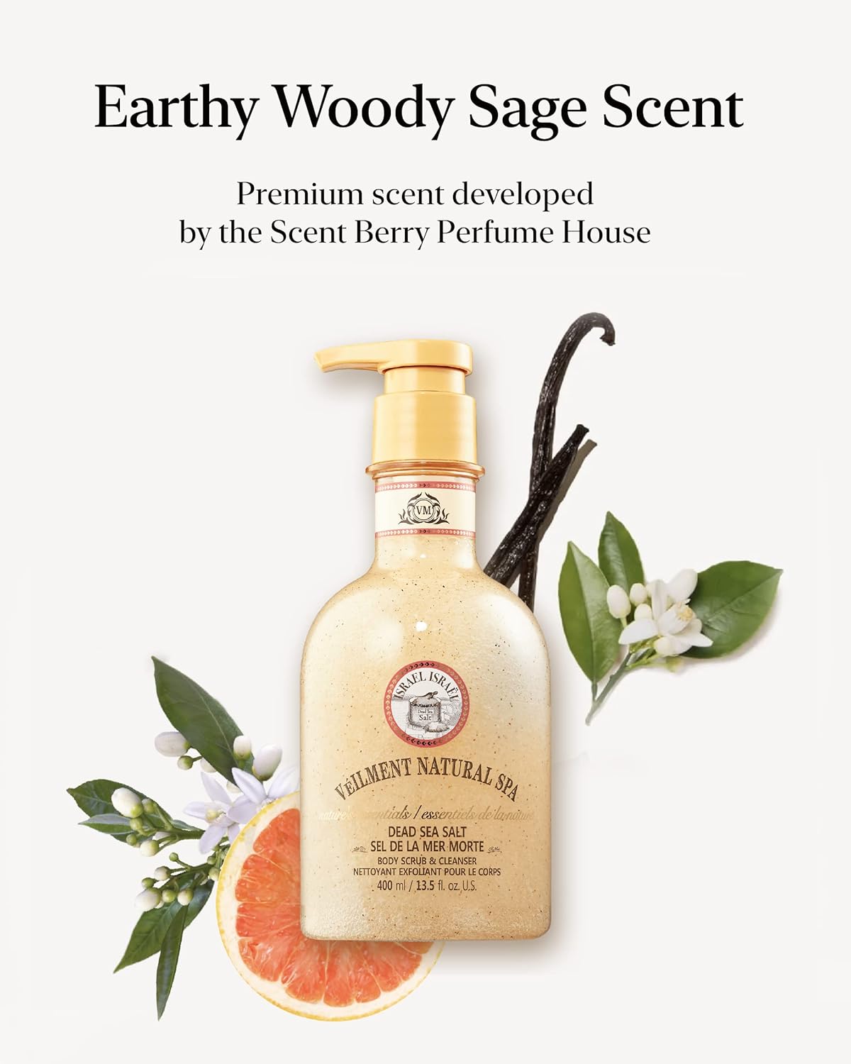 - BODY WASH & SCRUB 2-in-1 - Exfoliate dead skin cells and leave your skin smooth and silky with this gentle scrub formulated with Dead Sea salt, which is known to help hydrate while it exfoliates skin and clears the pores. Our formula is gentle enough to also be used on the face, hands or even feet. (Israel Dead Sea Salt)