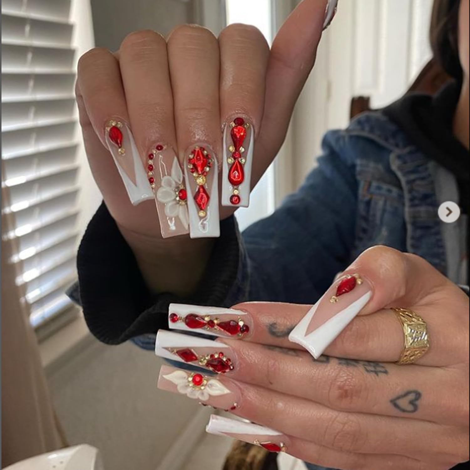HNUIX Nail Rhinestones - 3D Multi Shape Size, Red Nail Gems, Flat Back, with Kit, for Nail Art, DIY Decorations