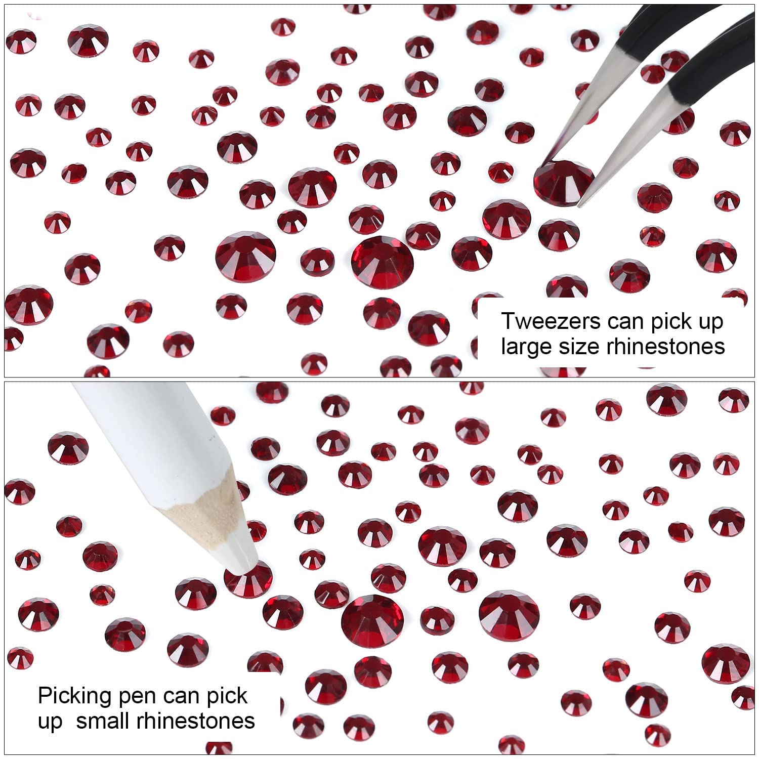 4240Pcs Dark Red Flatback Rhinestones 6 Sizes Crystal Diamonds for Nail Art Crafts Clothes Shoes with Tweezers and Picking Pen