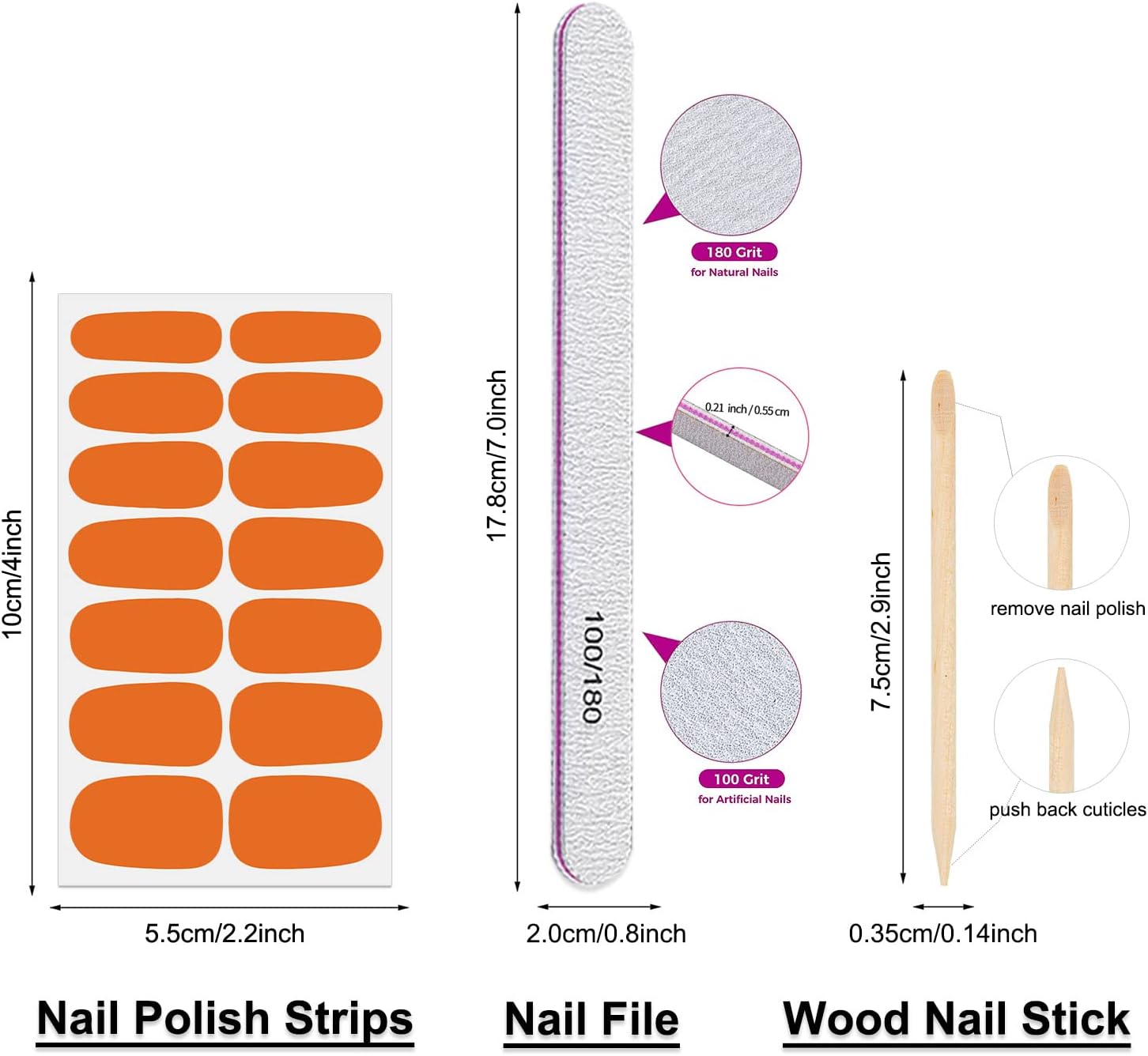 - [Quality & Durable] our sticker nail polish made of quality material, safe and odorless, bringing no hurt to your nails, also the full nail strips is durable, not easy to bubble and DON'T REQUIRED UV LIGHT.