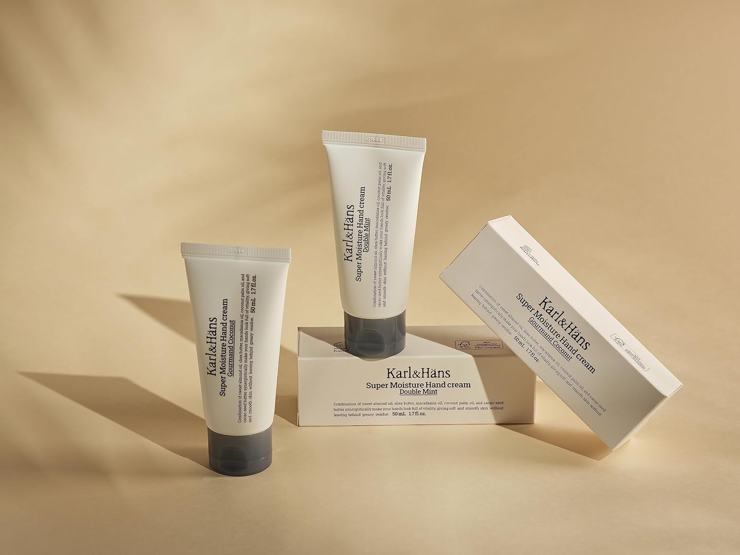 Karl&Hans Super Moisturizing Mint Vegan Hand Cream - Double Mint Scent with Shea Butter, Coconut Oil, Long-Lasting Refreshing Formula, Organic Daily Hand lotion for Dry Cracked Hands - 1.7 fl oz
