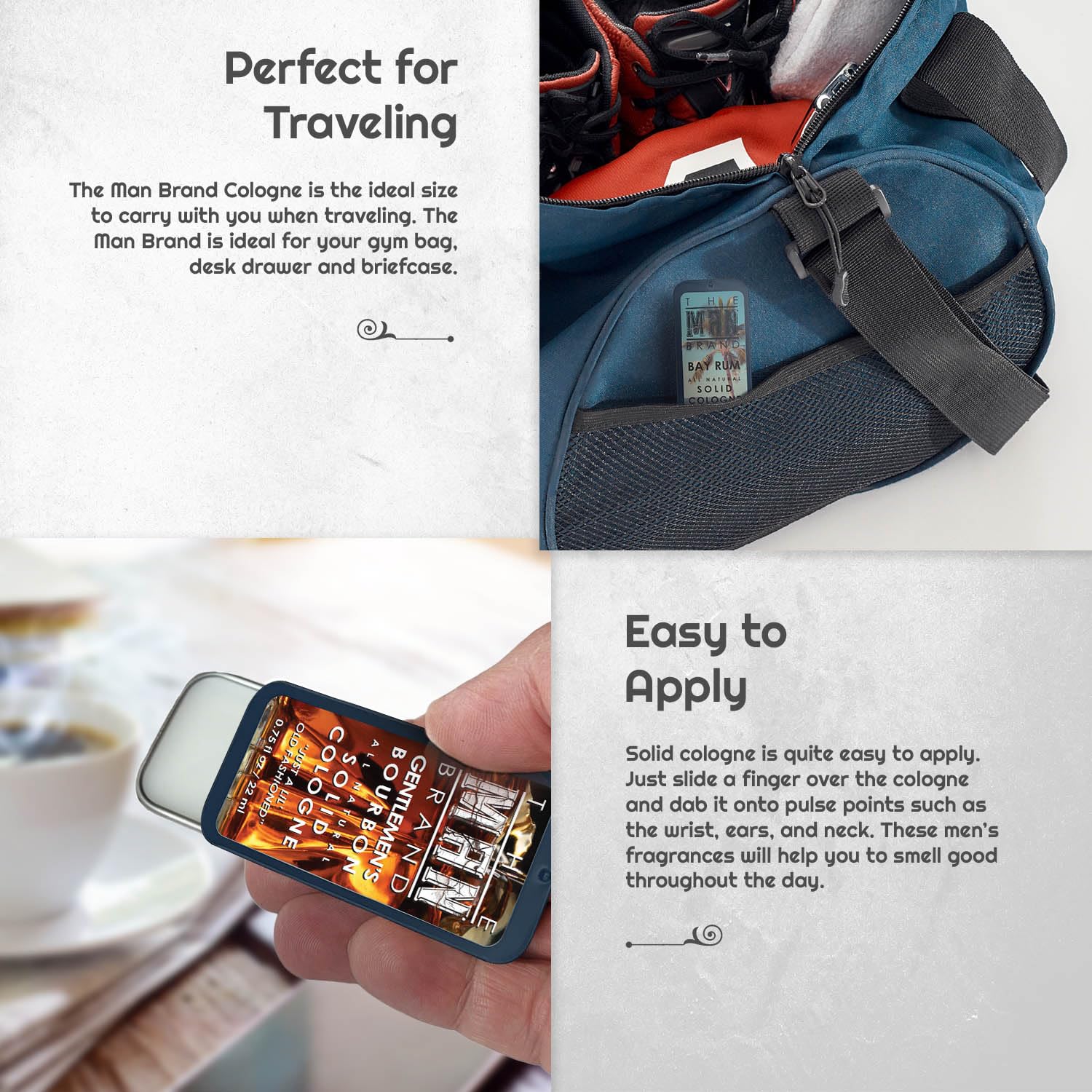 - The Traveler's Essential:Our solid colognes for men is the ultimate travel size mens cologne. Experience the scent touch-ups on the go, without worrying about bulky bottles.