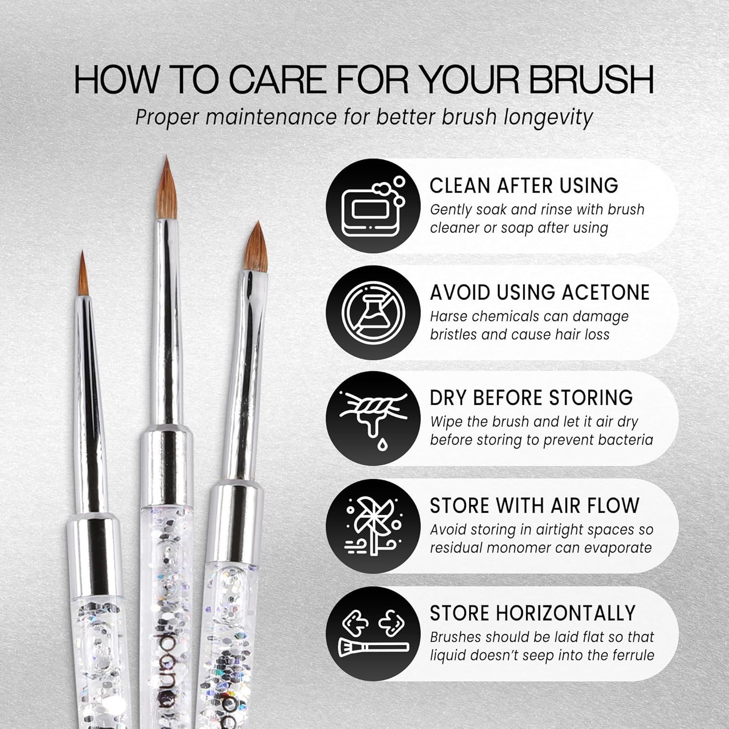 PANA 3D Kolinsky Nail Art Brush - Silver Glitter Handle, Size 5 - Acrylic Nail Art Sculpture Brush for Manicures Pedicure Salon Professional or Beginner