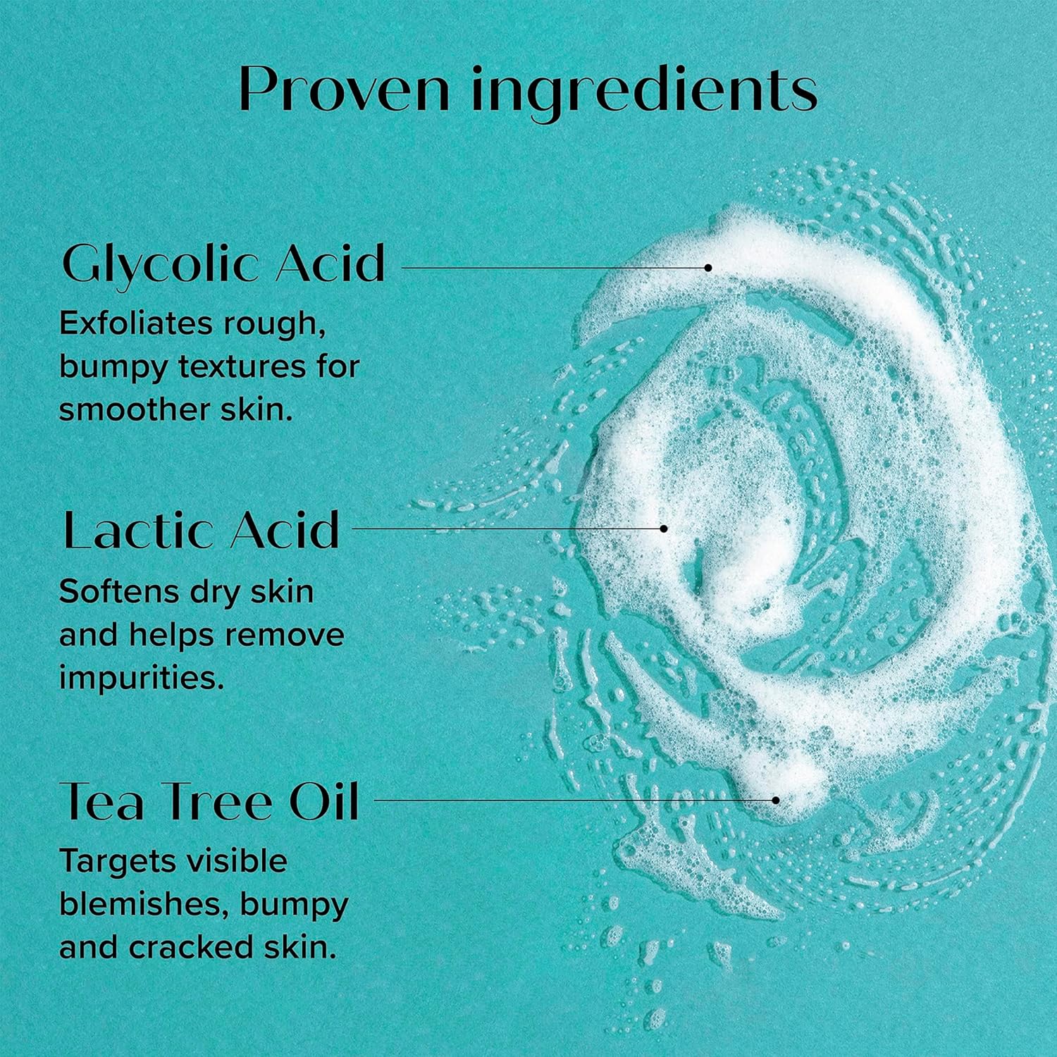 - SMOOTHING CLEANSE: Our glycolic acid body wash exfoliates and resurfaces rough and bumpy texture to reveal softer, smoother skin. The Alpha Hydroxy Acids within this exfoliating body wash prepares your skin for treatment body creams / lotions to effectively be applied by helping to remove the dry, dull skin that builds up on the surface of our skin. Dry skin can act like a shield that prevents active ingredients from penetrating.