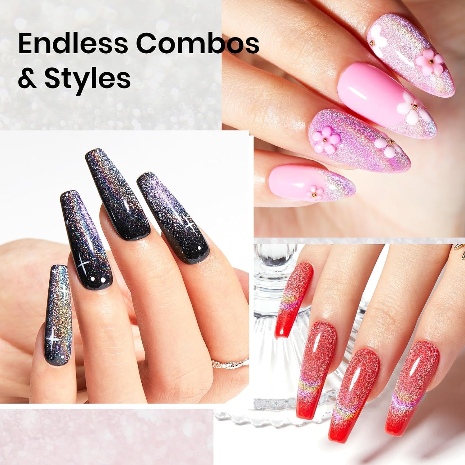 - 【Warm Tips】Please conduct a skin test before use with cat eye gel nail polish. Professionally formulated and only used for nails. Avoid contact with eyes, mouth, and skin. In case of contact with them, rinse immediately with water. Stop using the product if redness and itching developTips: Gently shake well before use—especially for metallic, glitter, and cat eye gel nail polish—to evenly mix natural settling of pigment particles.