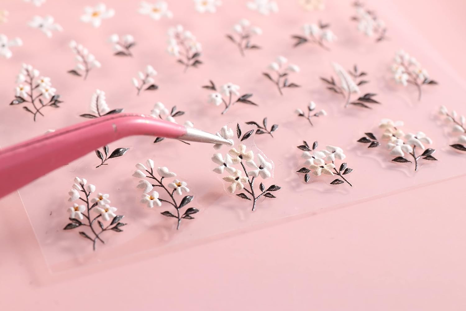 TailaiMei Flower Nail Art Stickers, 5D Embossed Colorful Spring Daisy Nail Decals, Self-Adhesive Design for DIY Decoration (3 Sheets)