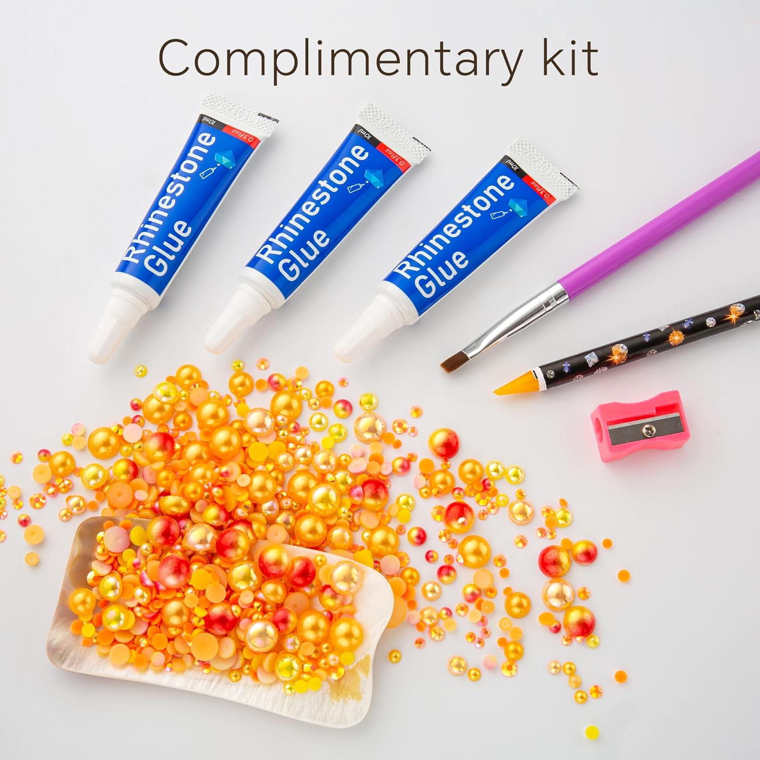 60g Orange Sun Magic Flat Flat Back Pearls Rhinestones for Crafts Mixed Size 3mm-10mm AB Color Round Half Pearls Flatback Pearl Beads and Resin Rhinestones Set for Face Art with Glue