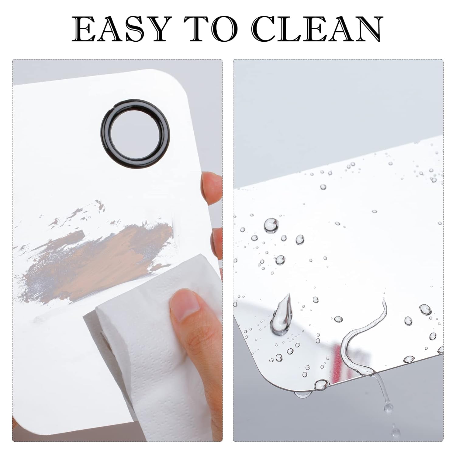 - High-Quality Materials: Our makeup spatula and palettes are both made of premium stainless steel, which is durable, rust-proof and easy to clean. The makeup mixing palette has black rubber-coated finger holes for easy grip and no damage to your hands