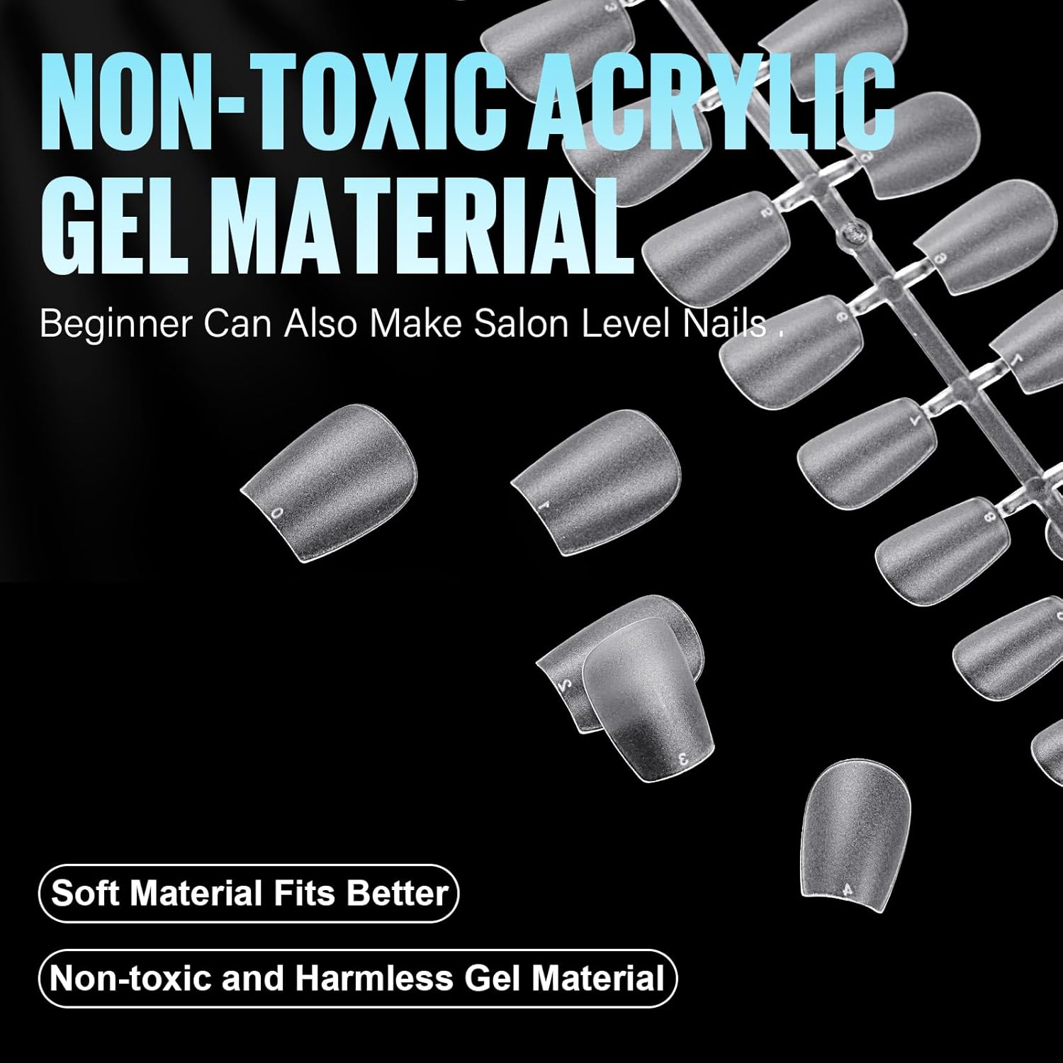 - 【Resistant to breakage】 TOMICCA nail tips are made of traceless acrylic material, which is not easy to break and peel off, thin and tough, nontoxic and tasteless, no harm to nails. The pre-shaped nail design also greatly saves the time of polishing the nail’s shape, making the nail art process easier and comfortable. Long Last 21 days with proper application.