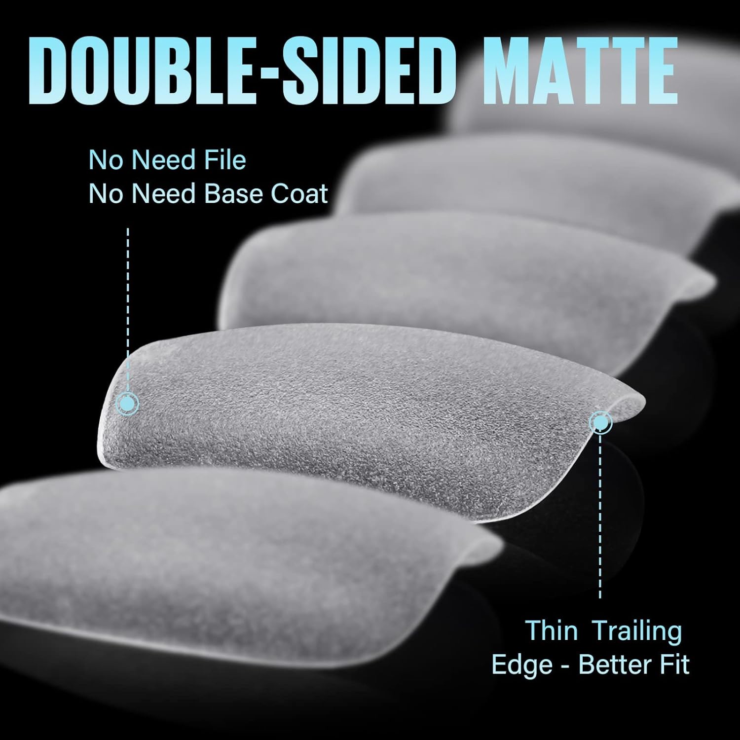 - 【Pre Buffed Nail Tips】The upgraded pre-buffed nail tips give you the privilege of "no file, no base coat". Protect your nail beds while saving time. Double-sided matte acrylic nails have stronger adhesion and can be pasted more firmly.