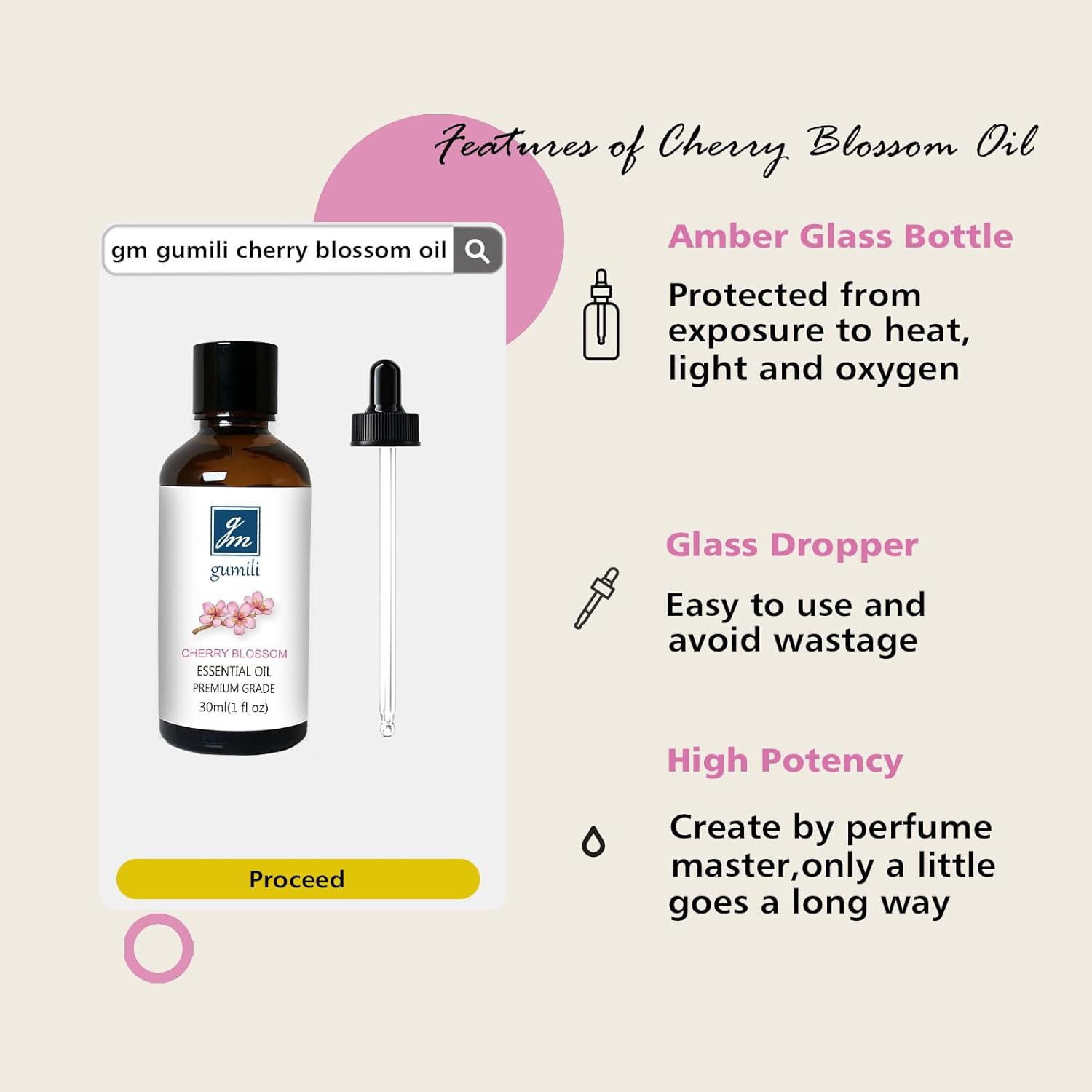 Cherry Blossom Essential Oil, Home Fragrance Oil, Scent Oils for Candle Making, Soap, Dryer Balls, Diffusers, Laundry, Slime -1 oz /30ml