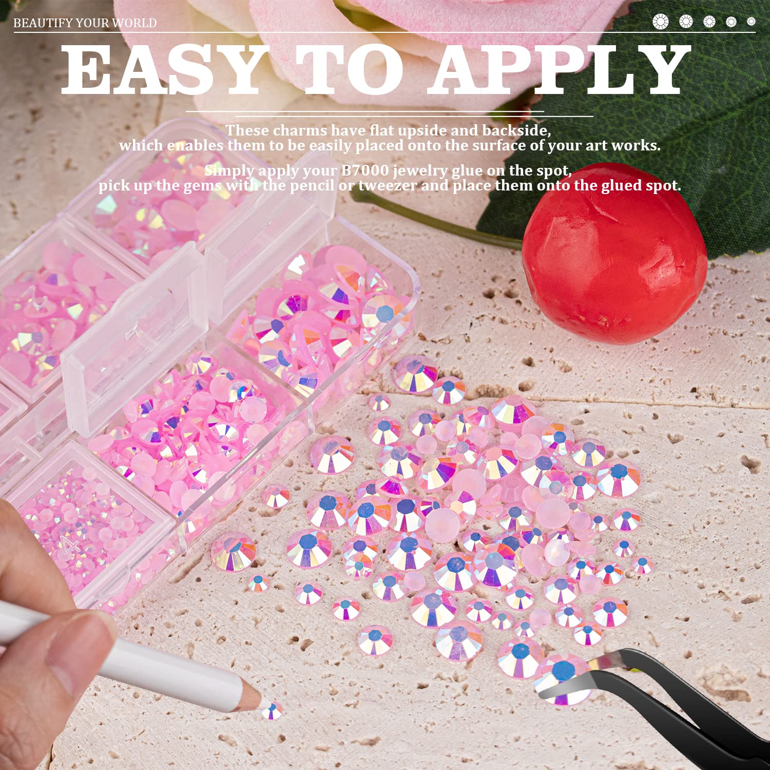 Resin Rhinestones Crafting, 2/3/4/5/6mm Flatback Jelly Rhinestones, 2 Boxes Light Pink AB Non Hotfix Crystal Gems for Bedazzling Crafts Mugs Tumblers Clothes Makeup Nail