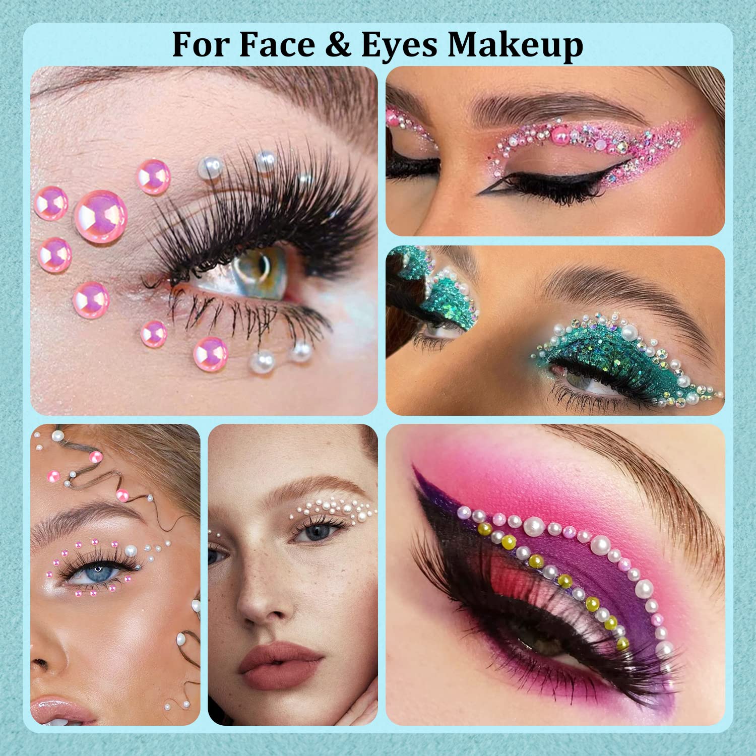 - MIXED SIZE: This set contains six sizes of half pearls and rhinestones:3/4/5/6/8/10mm. The various size range of pearls and gems can be used for nail art, craft, and decoration.
