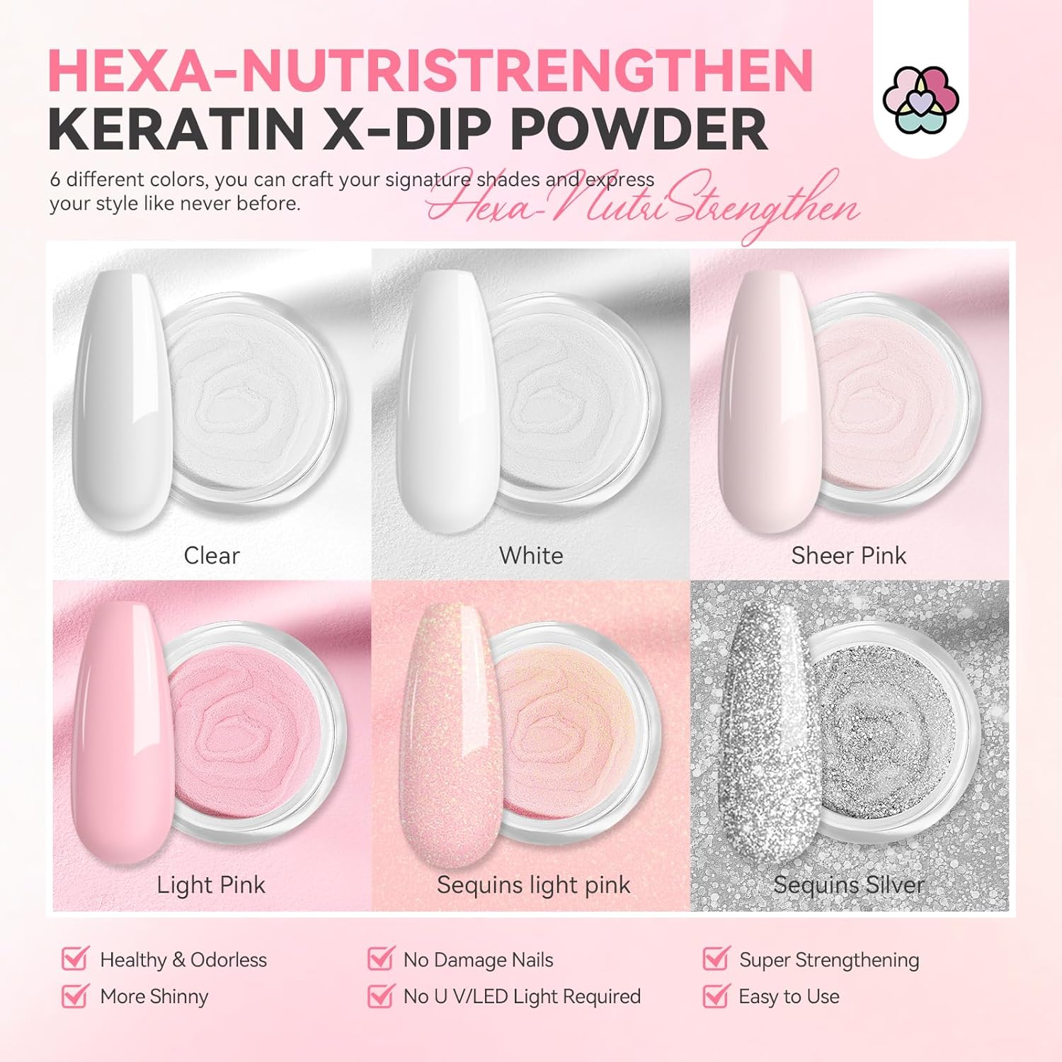 - Easy to Use & Long-Lasting: This dip nail kit is beginner friendly, easily master application skills and get professional-grade manicure results. SSProDip X nail dip powder adopts air-drying technology, say goodbye to U V/LED lamps and save time! Avoid skin darkening and damage! Easy to use and remove. Professional dip powder liquid system ensures the best bond with the natural nail plate, not easy to yellow and fall off, keep lasting gloss up to 3-4 weeks