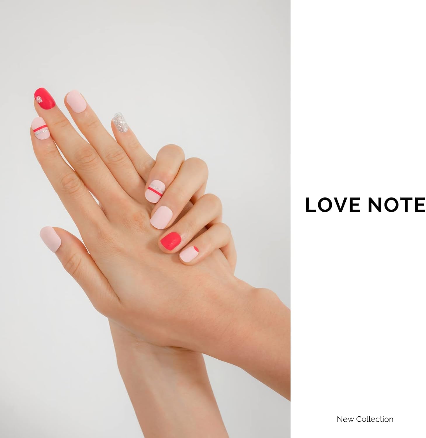 NAILOG Valentines Semi Cured Gel Nail Strips 34 pcs, Buy 2 Get 1 UV Lamp, Salon-Quality Gel Nail Stickers, Valentines Day Gel Nail Wraps with Soft Gel Finish | Love Note