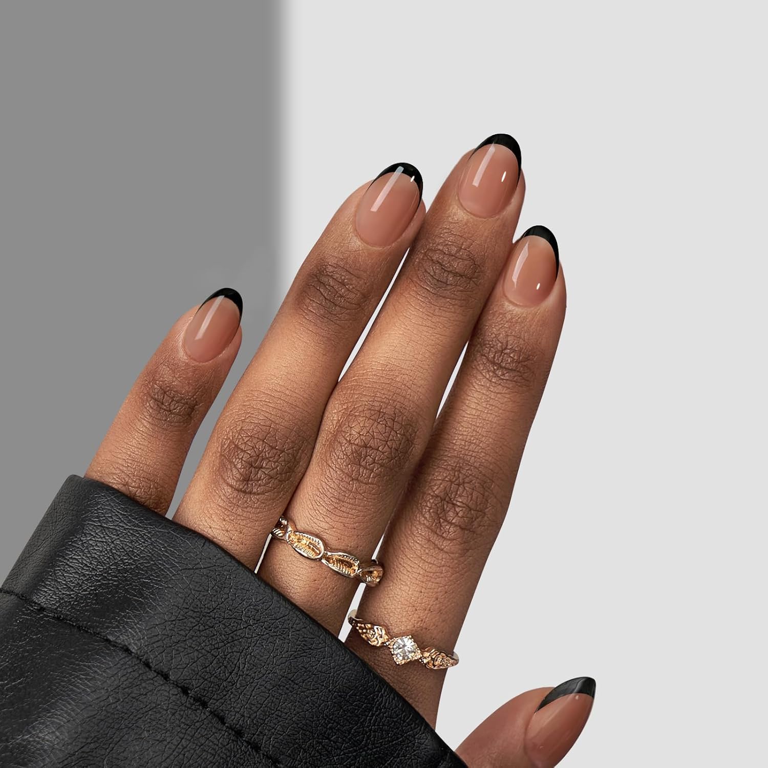 BTArtboxnails XCOATTIPS French Gel Nails - Black French Tip Press on Nails, Soft Gel Extra Short Almond Nail Tips, Press on Nails Acrylic Nail, Soak Off Fake Nails Extension