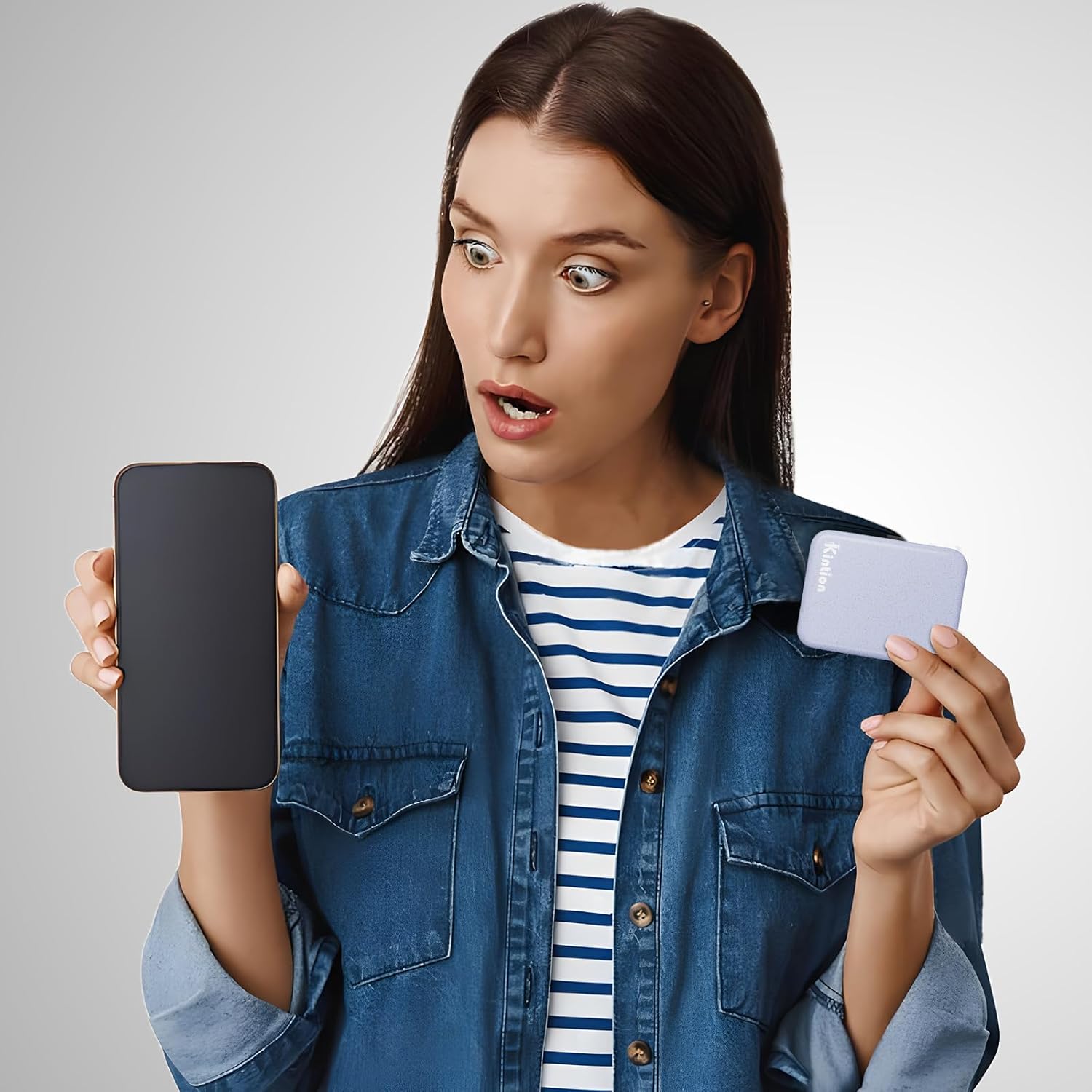 Kintion Rechargeable Pocket Mirror, Wheat Straw Material 1X/3X Magnification Portable Compact Mirror, Handheld Travel Mirror, Small Purse Mirrors for Women, Purple