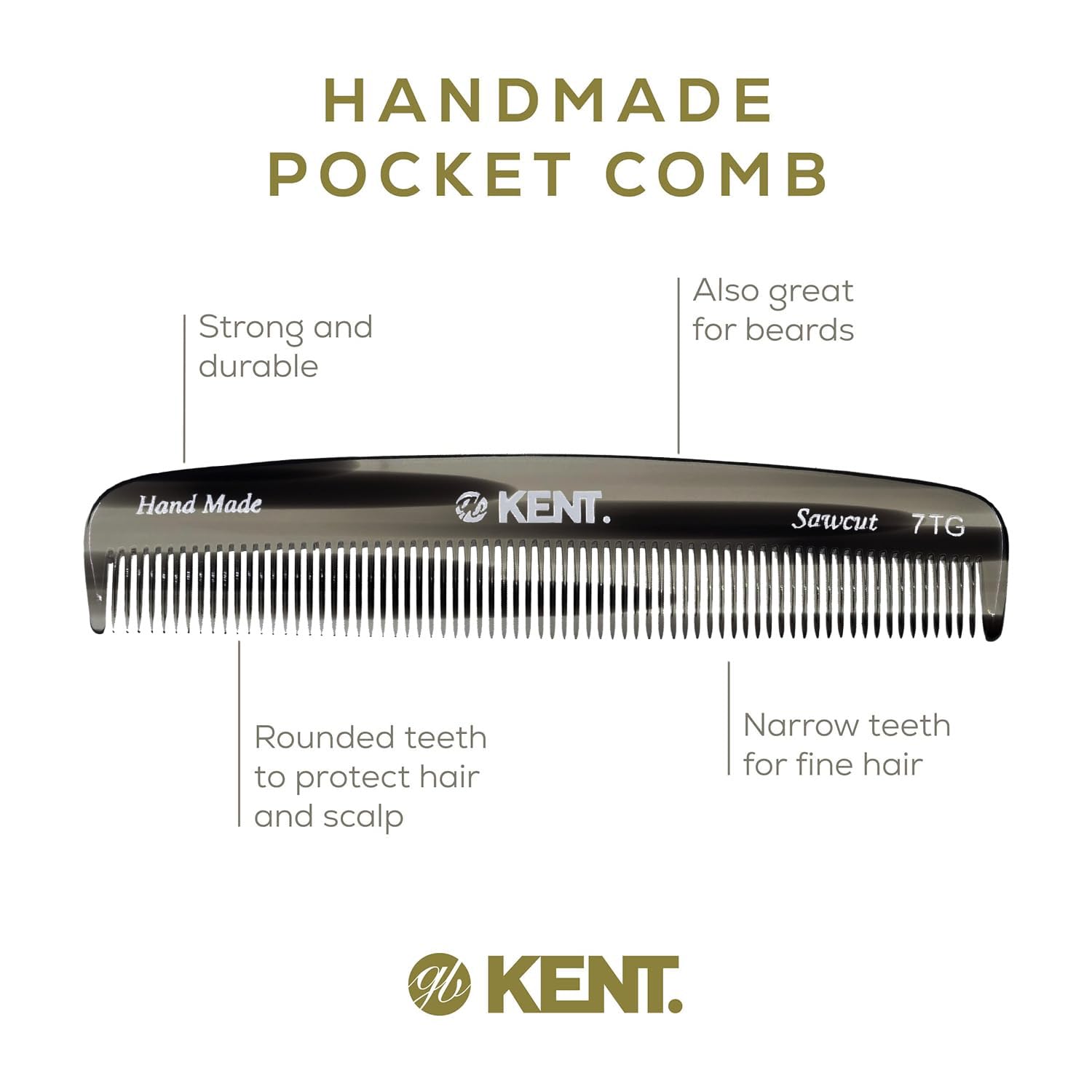 Kent 7T Black Graphite All Fine Tooth Pocket Comb for Men - Handmade Hair Comb for Men for Everyday Grooming and Styling - Travel Comb for Hair Care, Mustache and Beard Care, Saw Cut and Hand Polished