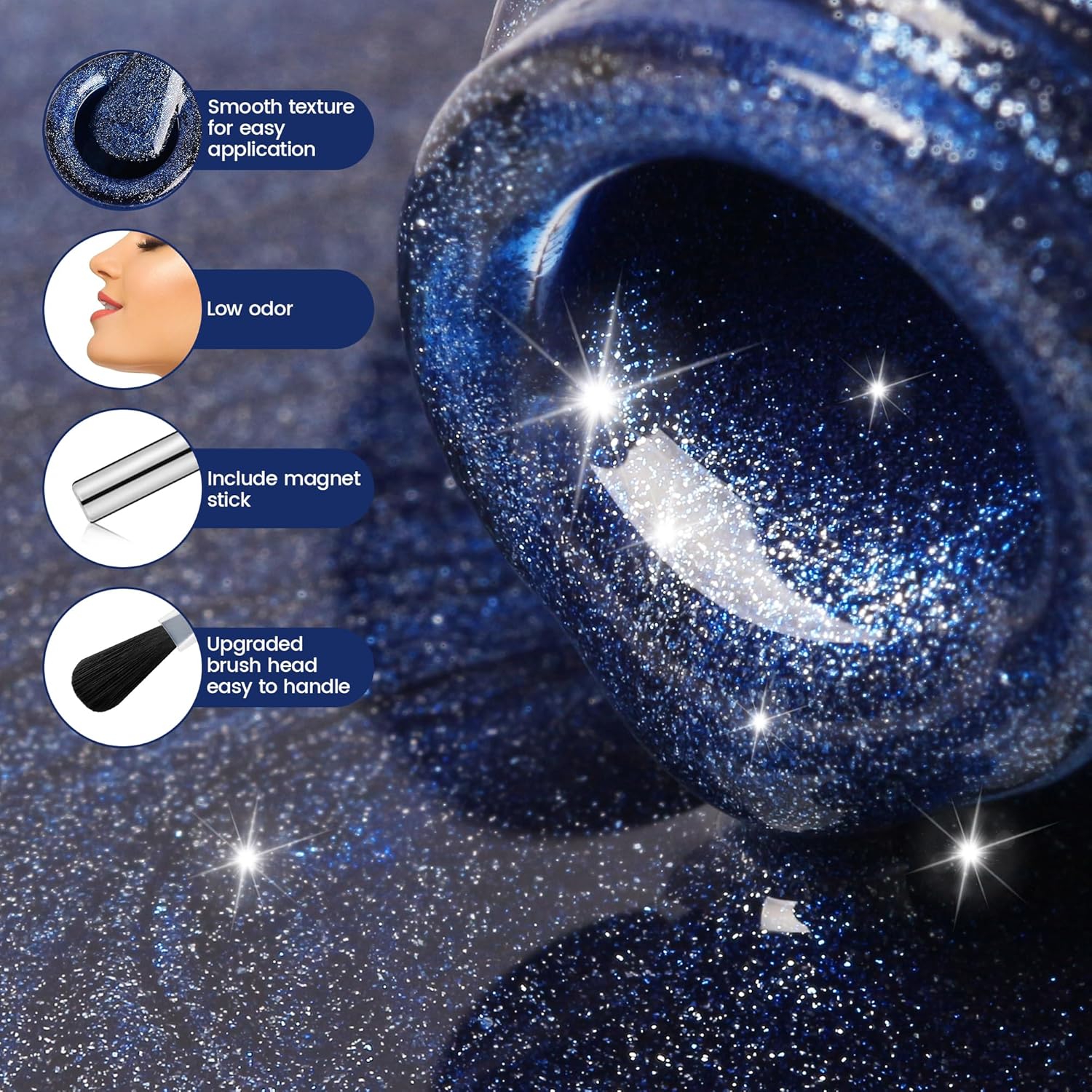 - Glitter Cat Eye Gel with Magnet Stick: The gel contains more upgraded high-gloss magnetic glitter for better shine and sparkle. With the magnet stick and refer to the tutorial for more practice, you can DIY a variety of cat eye patterns with lots of fun.