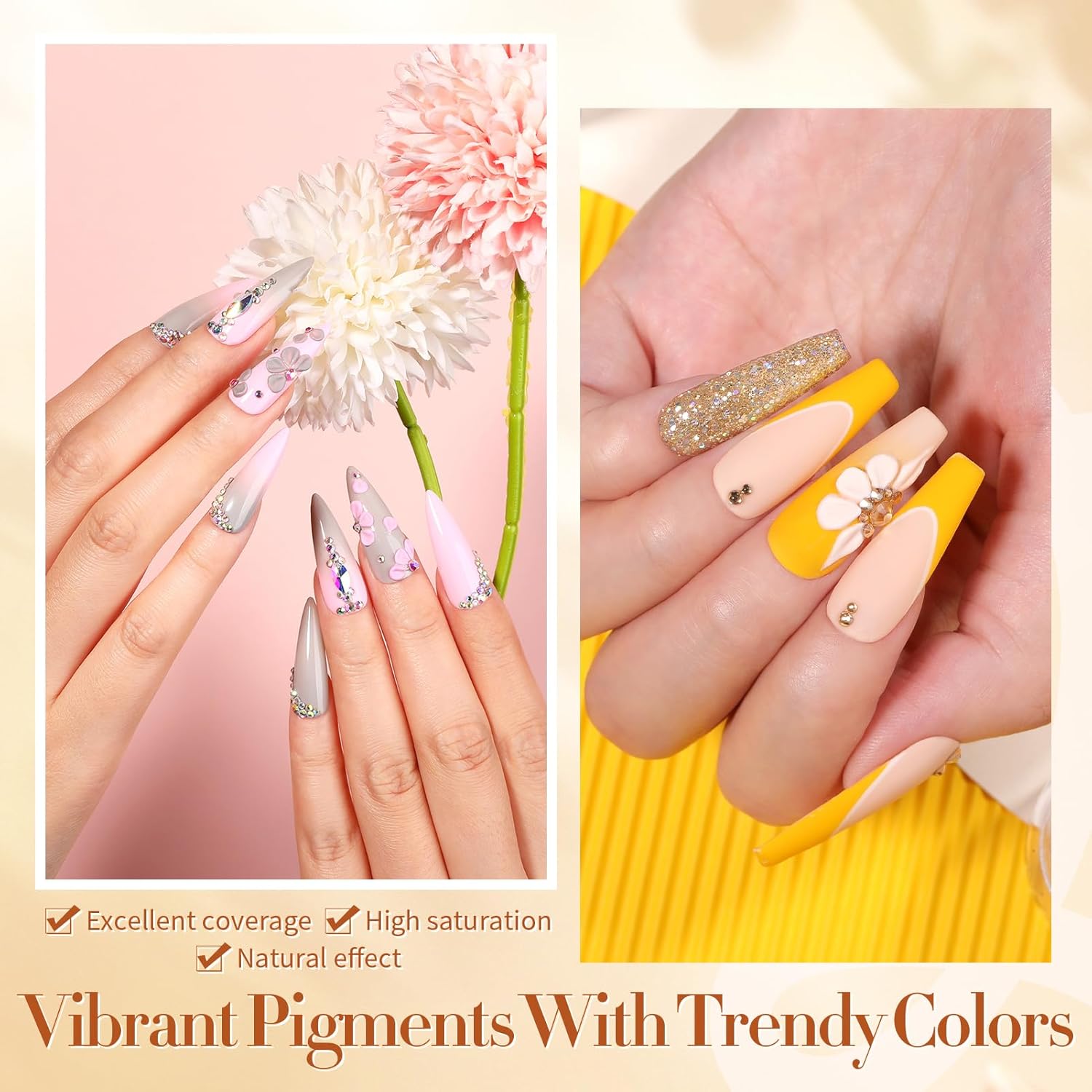 - ❤VIBRANT COLOR & FANTASTIC LOOK: This nail acrylic powder set has vivid colors and can bring unlimited joy to your life. This set is a combination of solid vivid colors and super glitters.