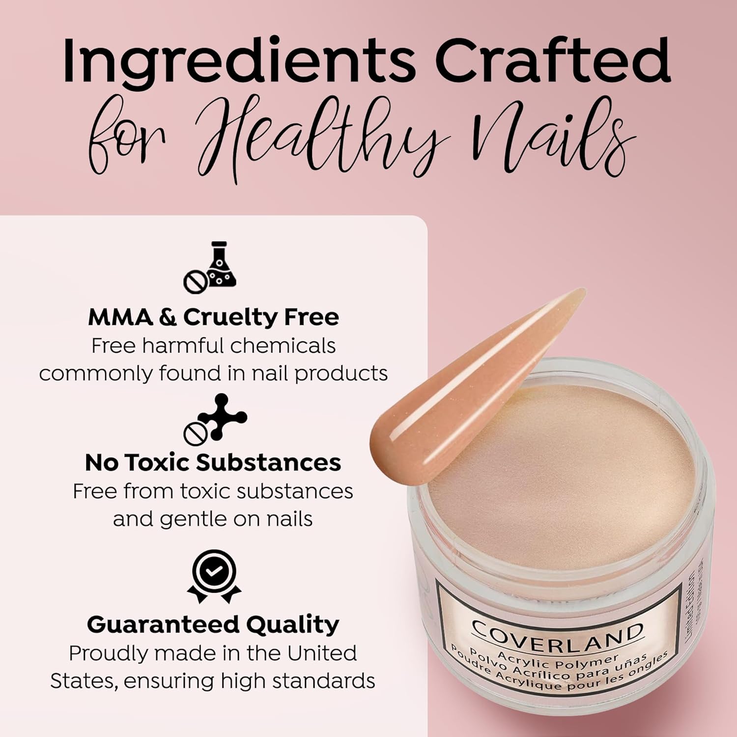 - βοΈππππ ππππππππ πππππ: The flexibility and adhesion properties of Coverland colored acrylic nail powder make it easy to shape nails with precision, and offers nice control for professionals who prefer to work with a polymerization rate of moderate to fast.