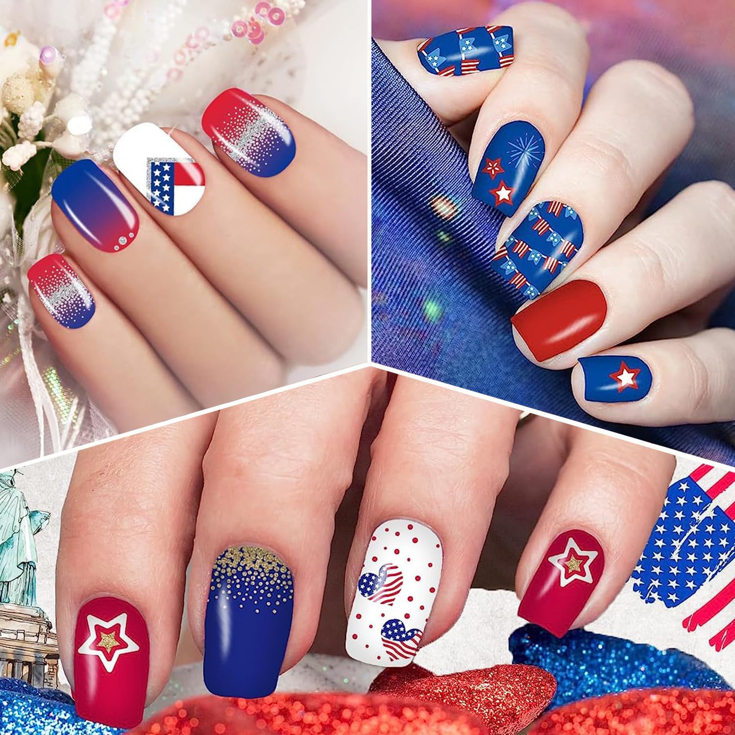 - [Easy To Use] 4th of July nail polish strips is self-adhesive quality viscose, it can be stick directly on nails, more duration and easy to remove. suitable for nail art course/nail art artist and personal use, etc.