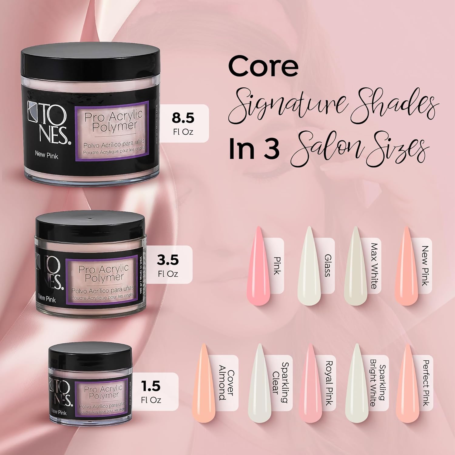 Tones Pro Acrylic Nail Powder, New Pink (Fresh Peach-Toned Pink), (8.5 Fl Oz) - Long-Lasting & Non-Yellowing Polymer for Salon Quality Nail Extensions & 3D Art