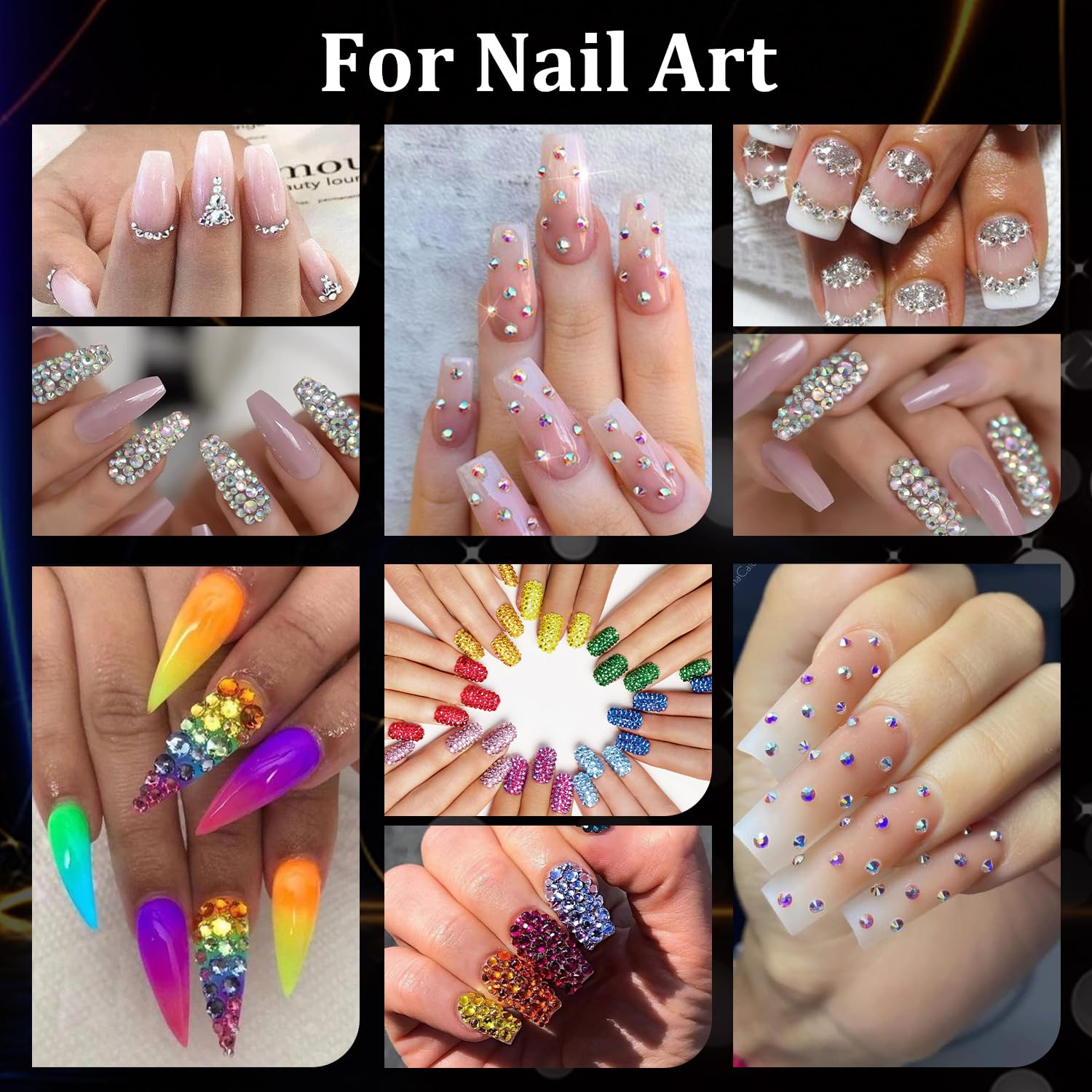 - 💎SPARKLING BRILLIANCE FOR ALL -- The dazzling nail stones can decorate natural or acrylic nails, suitable for nail art beginners, hobbyists, nail tech, and professional manicure salons. We offer a wide size range, from 2mm to 5mm, that is perfect for your DIY nail art projects. You can get creative nail art shapes and patterns by mixing sizes and colors. Besides, the gems can be also used for eye or face makeup and crafting, such as bedazzling clothes, shoes, tumblers, and cards.