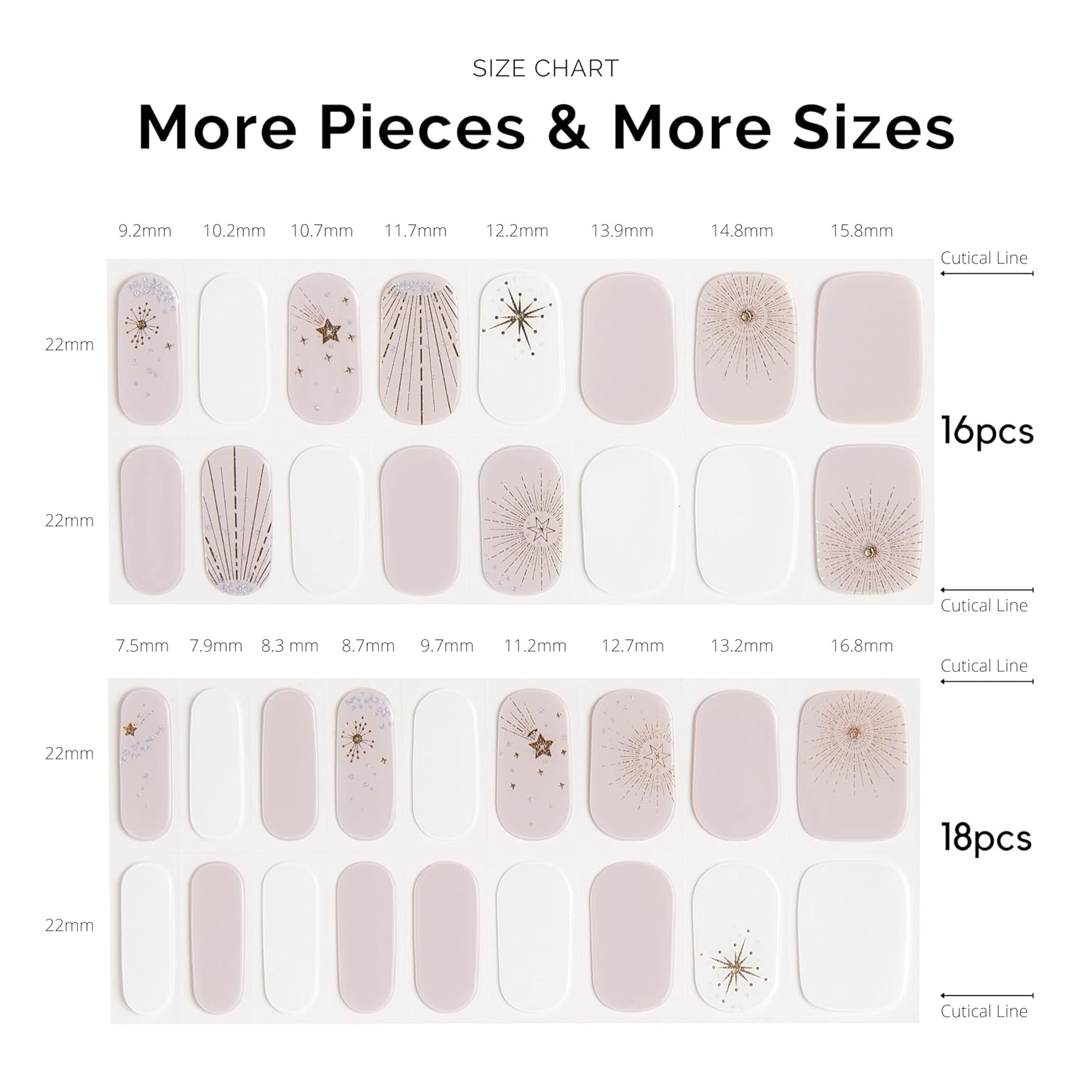 - 【WHAT YOU GET】34 Pieces gel polish strips in 17 sizes, 2 prep pads, 1 nail file, and 1 wooden stick. -Our semi cured nail strips are free from toxic, animal-derived, or harmful ingredients and are vegan, safe to use, and odorless. A perfect cost & time-saving DIY manicure kit.