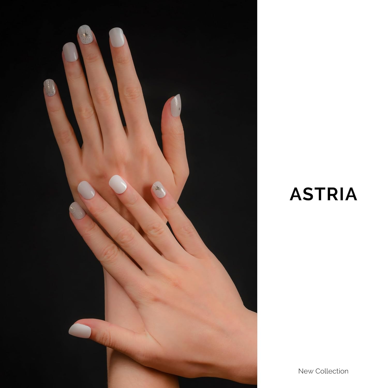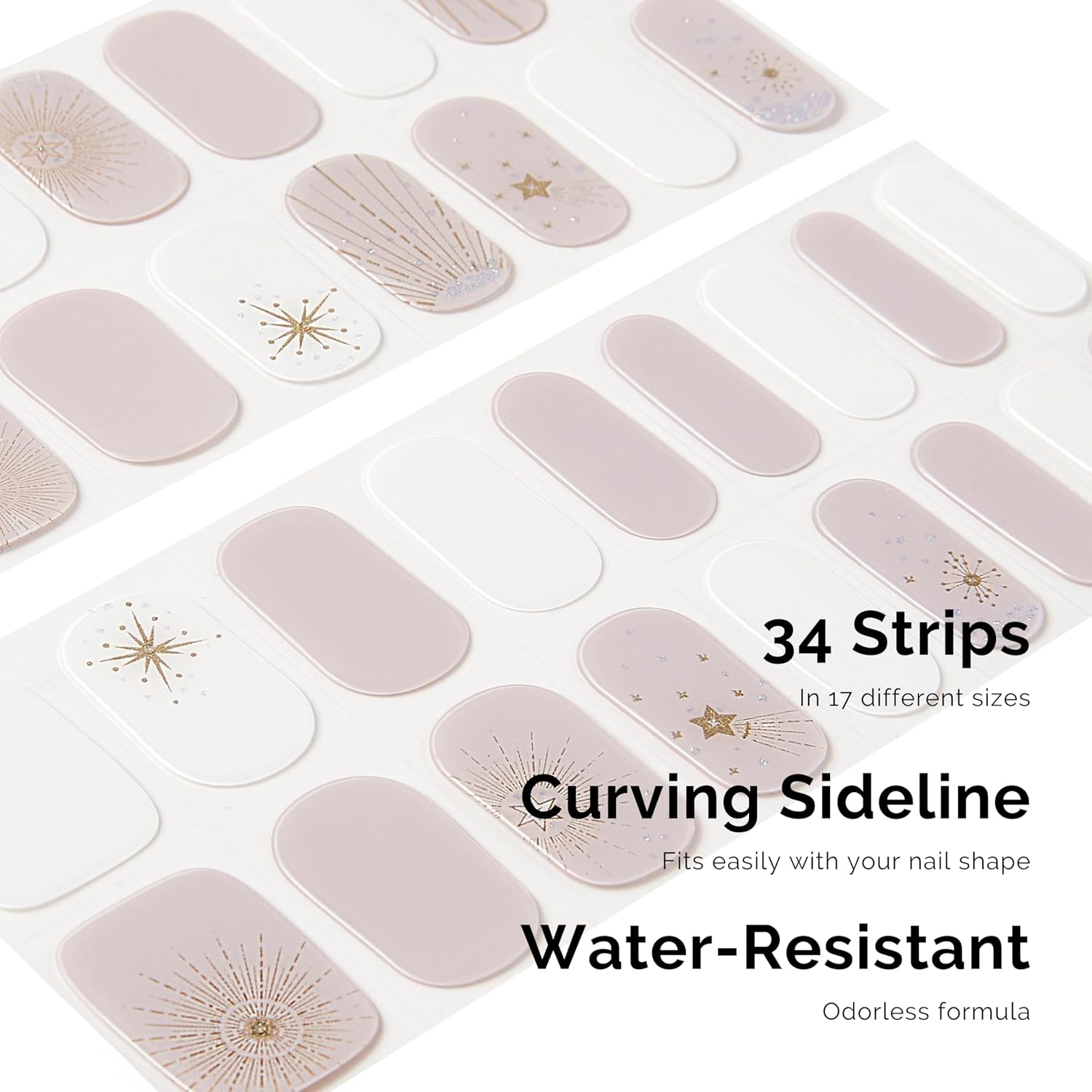NAILOG Semi Cured Gel Nail Strips 34 pcs| Buy 2 Get 1 UV Lamp | Long Lasting Nail Polish Sticker Wraps with Glossy Gel Finish, Astria