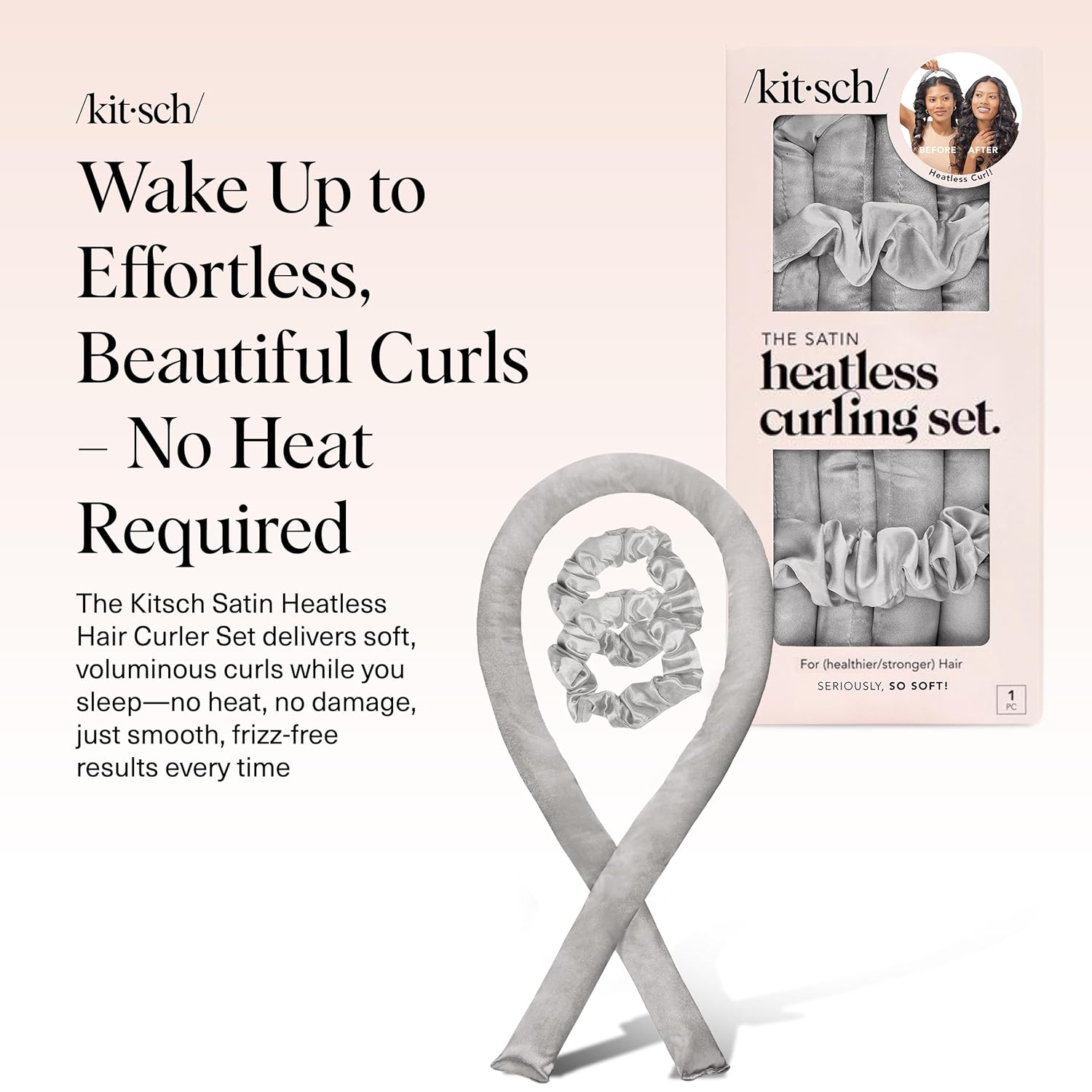 - COMPLETE SET FOR EASY STYLING: Everything you need for perfect curls: a 34-inch satin curling rod (1.25” diameter) and 2 satin scrunchies to hold your style in place. No noise, no heat, no cords—just a quick, easy way to achieve blowout roller results at home, every time.