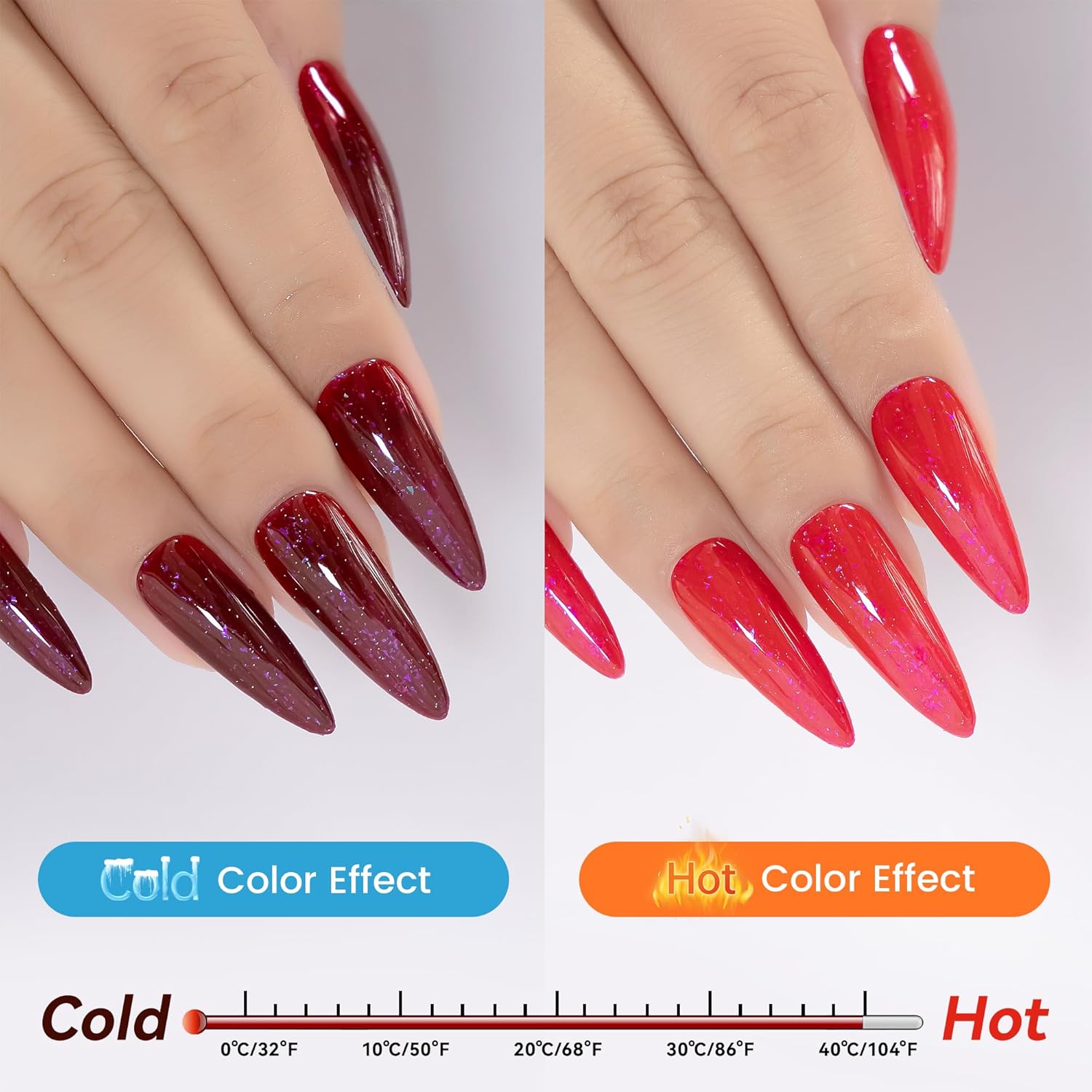 YTD Likomey Color Changing Gel Nail Polish,15ml Red To Burgundy Shimmer Brocade Glitter Mood Temperature Change Colors Iridescent Flakes,Ombre Thermal Fall Winter UV Varnish,WB350