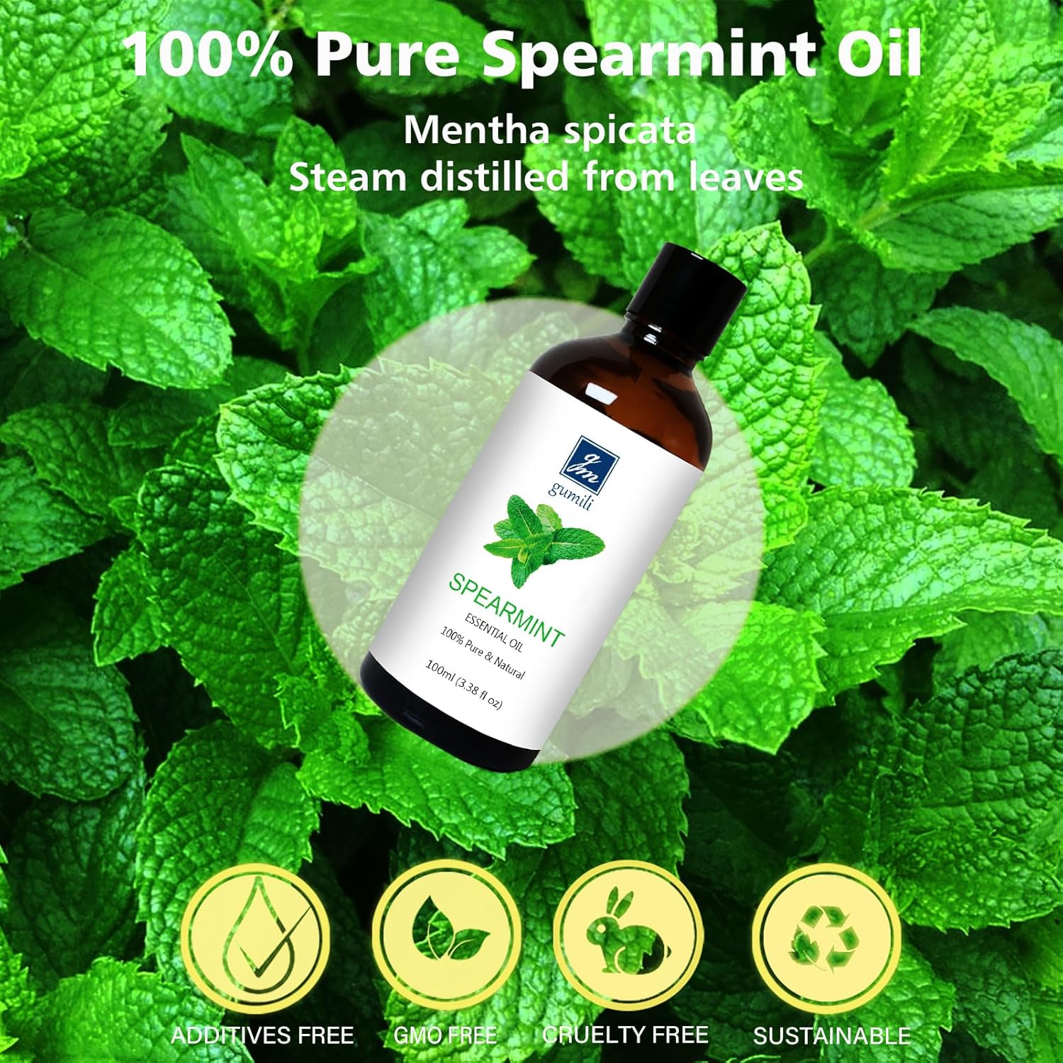 - PURE SPEARMINT ESSENTIAL OIL: sourced from India, without additives, undiluted, safe for your health
